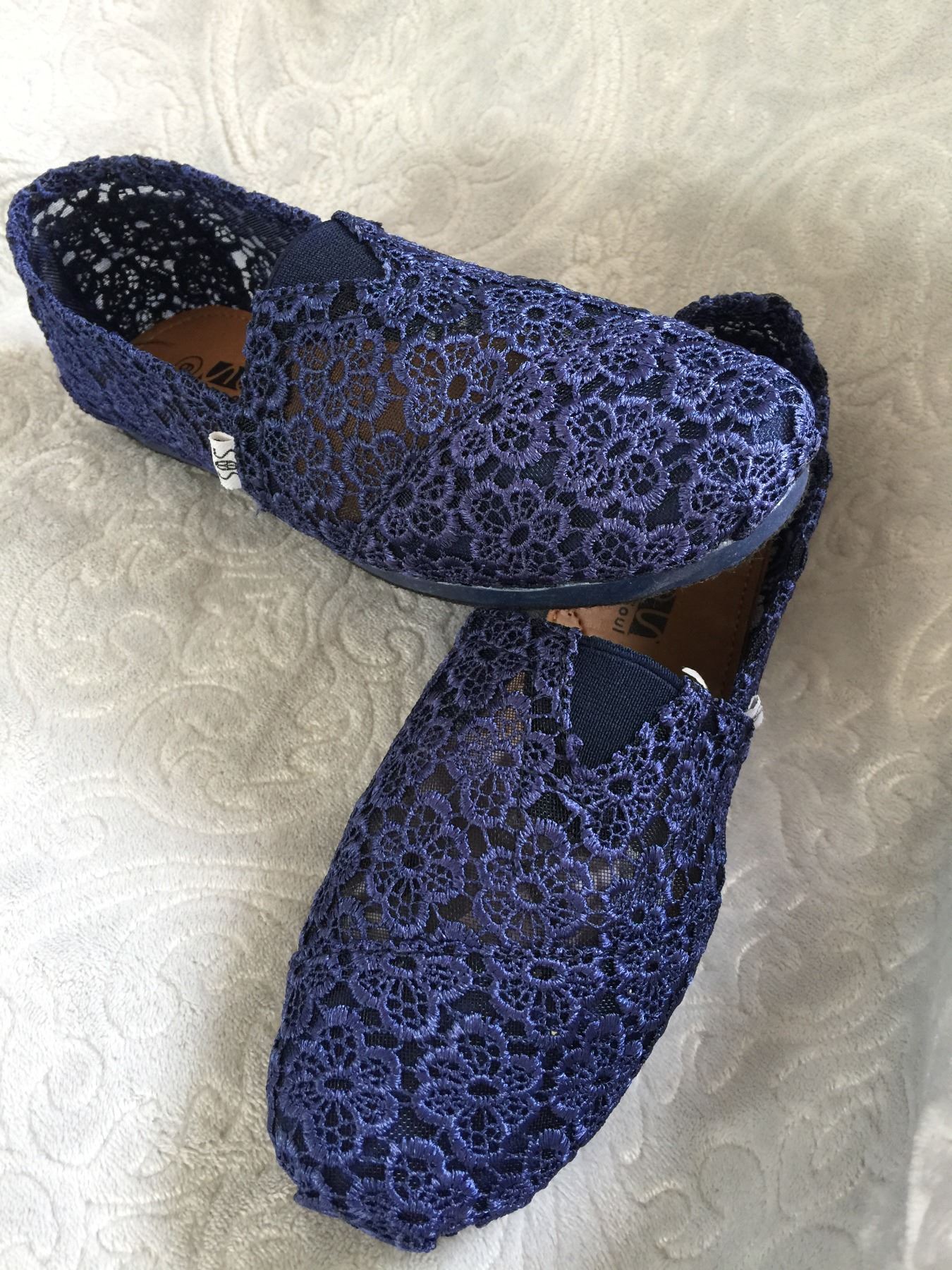LADIES SLIP ON FLORAL SHOES-NAVY BLUE/size 10
