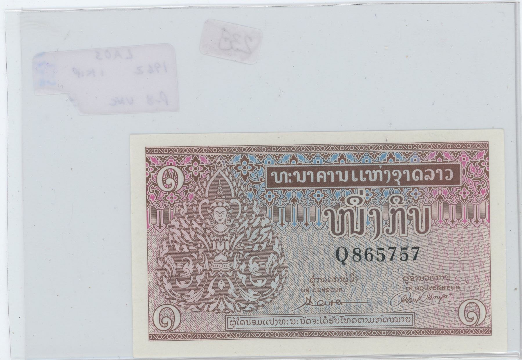 LAOS. 1962 1 KIP. ELEPHANTS. P-8. UNC.