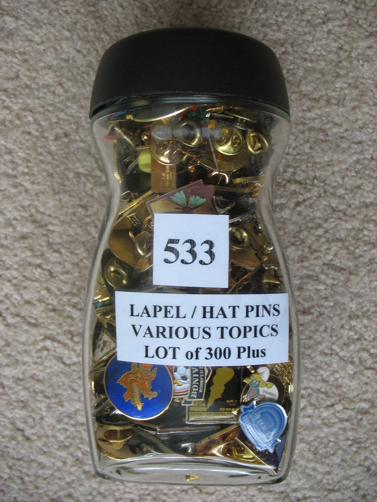 LAPEL / HAT PINS - LOT OF 300 PLUS - VARIOUS TOPICS