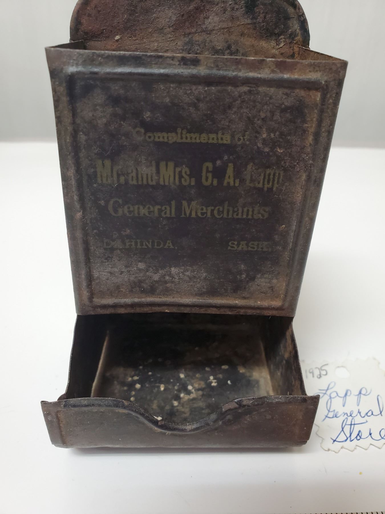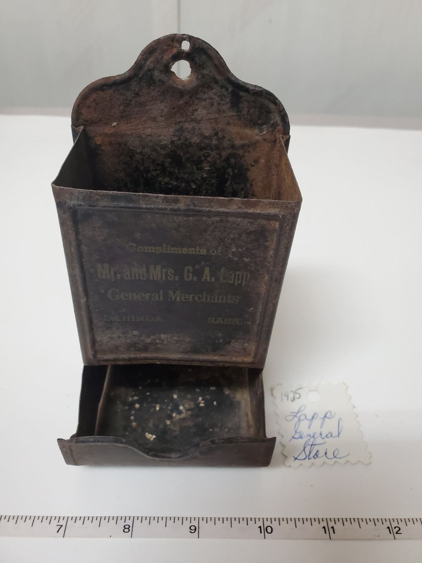 LAPP GENERAL STORE - 1925 MATCHBOX HOLDER - DAHINDA, SK