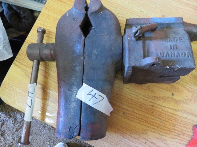 LARGE BENCH VISE (SWIVEL WITH SMALL ANVIL AT THE END) *PIPE JAW*