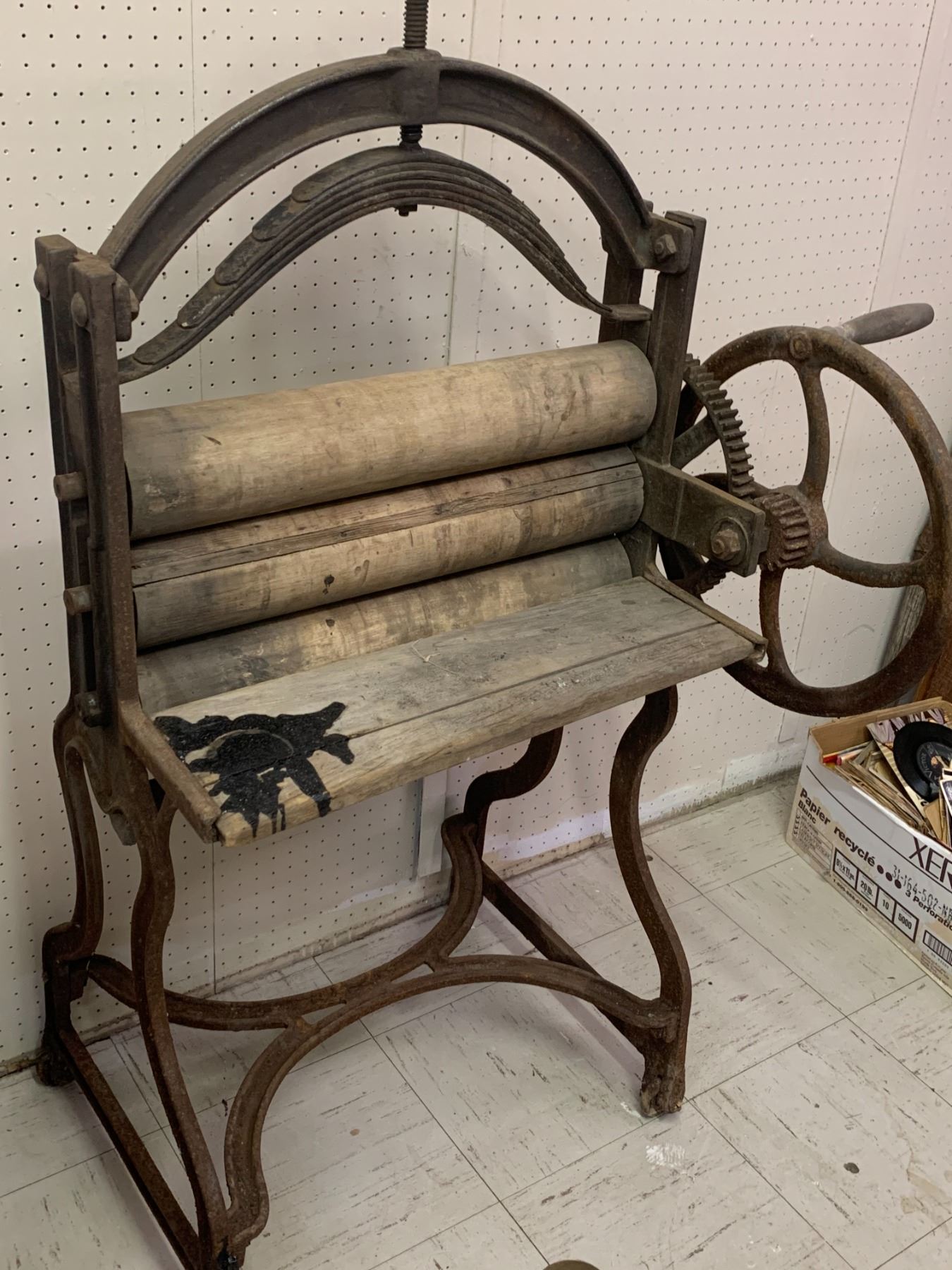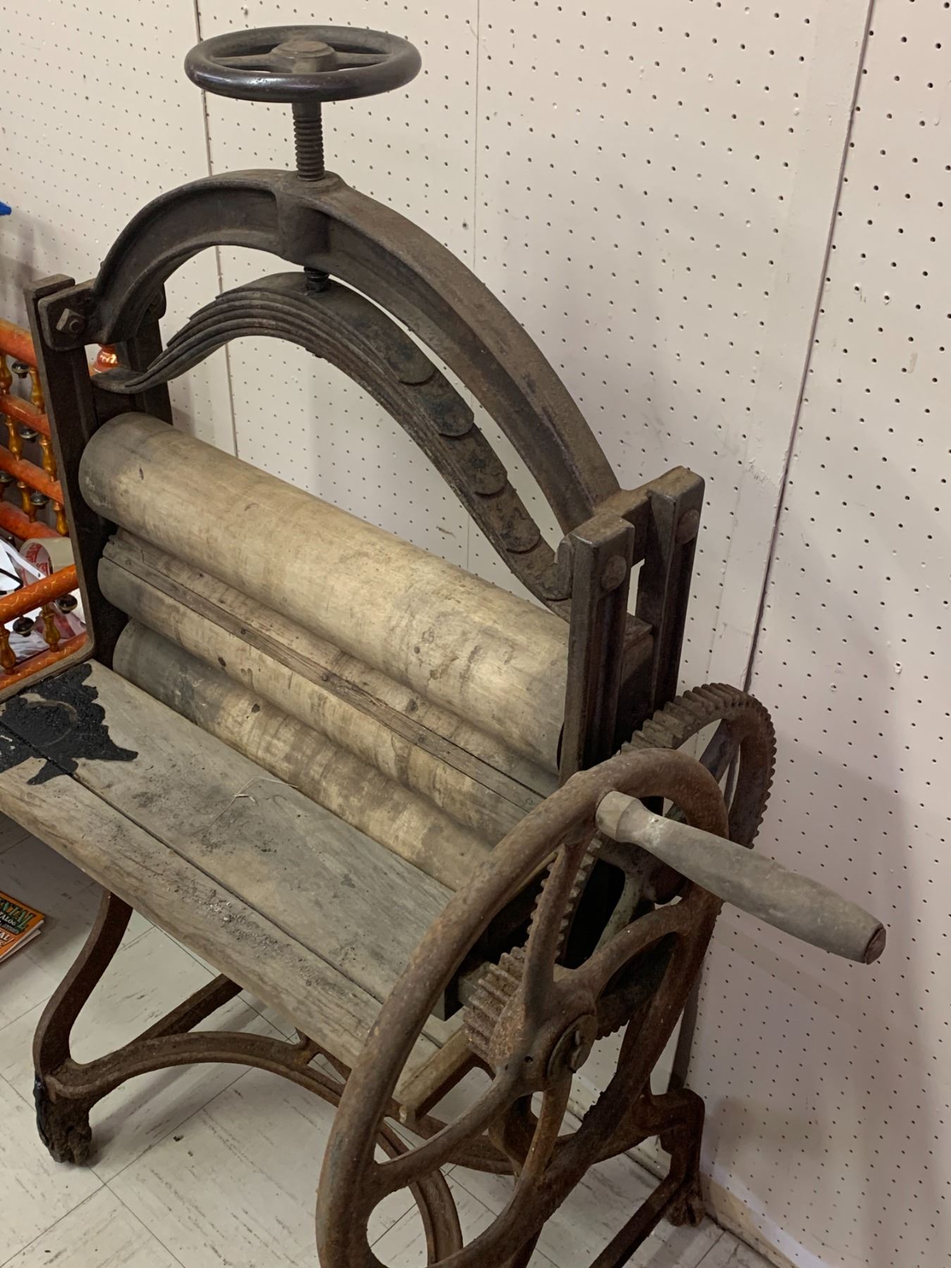 LARGE LAUNDRY WRINGER PRESS STANDS 54" TALL