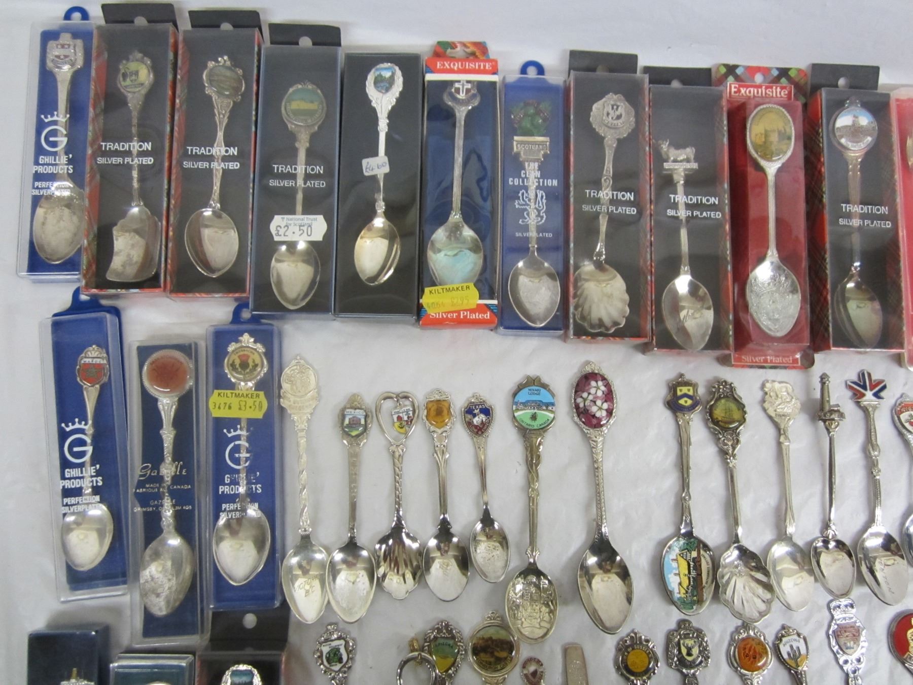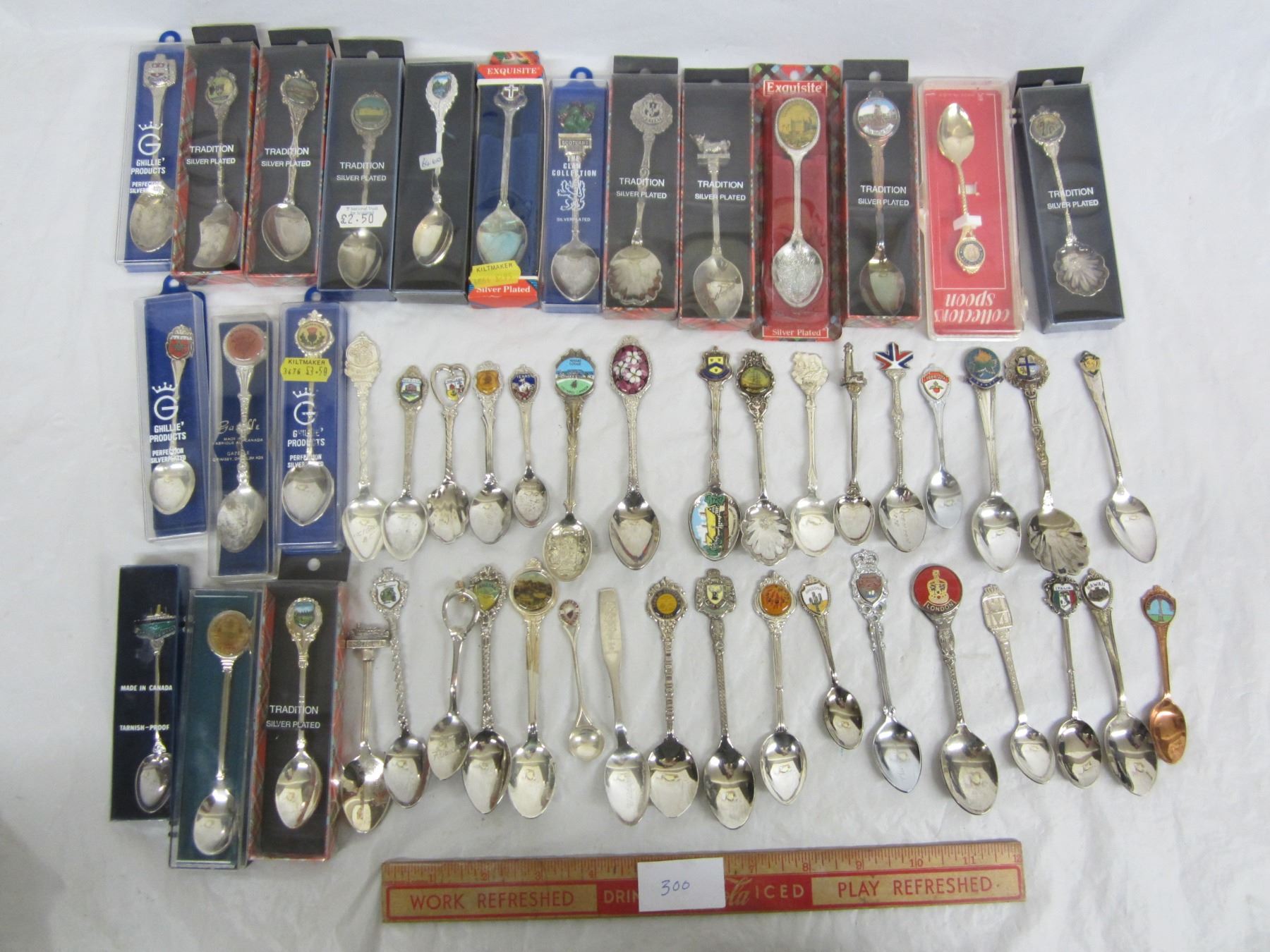 LARGE LOT OF SOUVENIR SPOONS SOME WITH BOXES