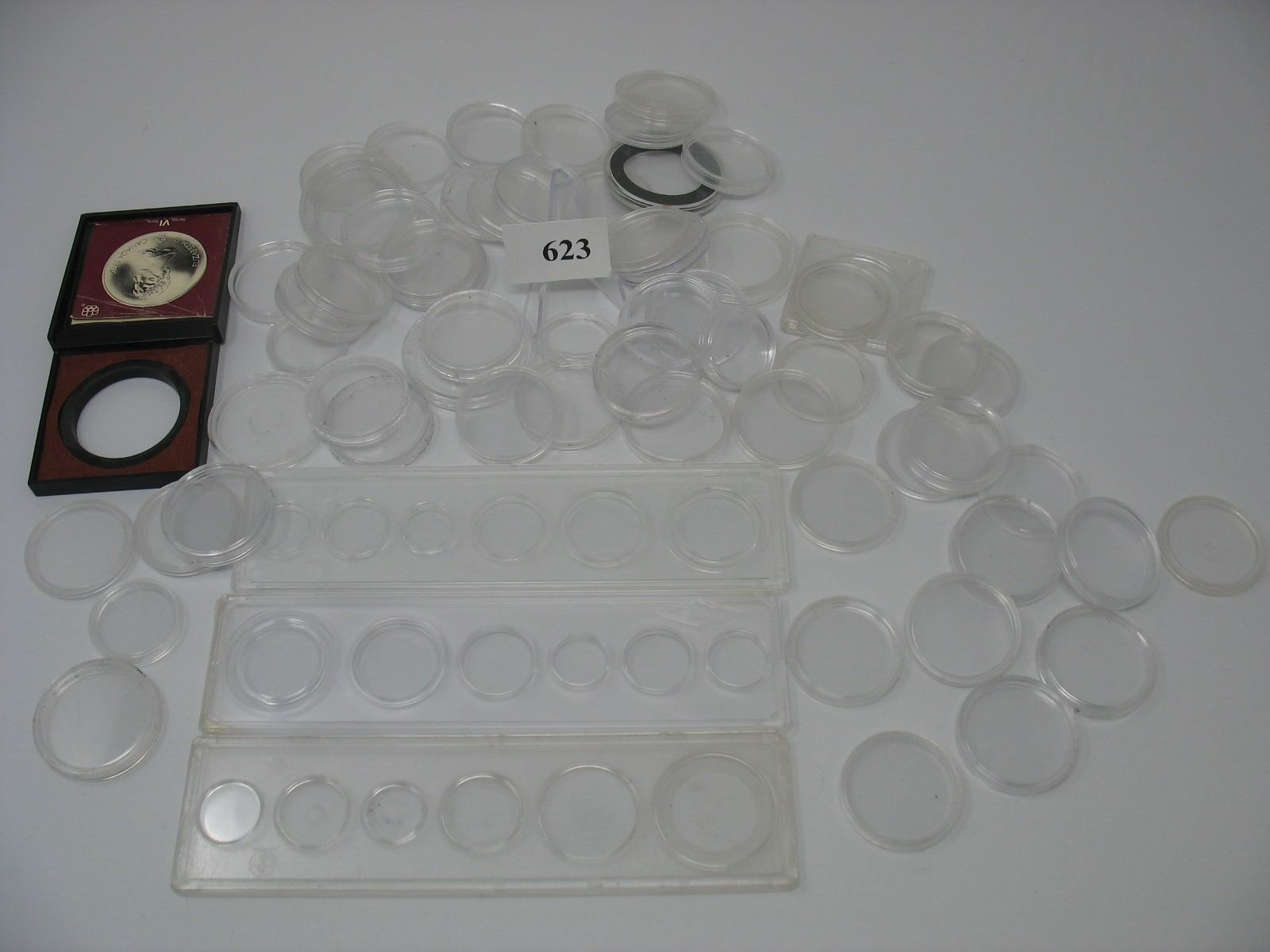 LARGE LOT of GENTLY USED COIN CAPSULES (60) & YEAR SET HOLDERS (25)