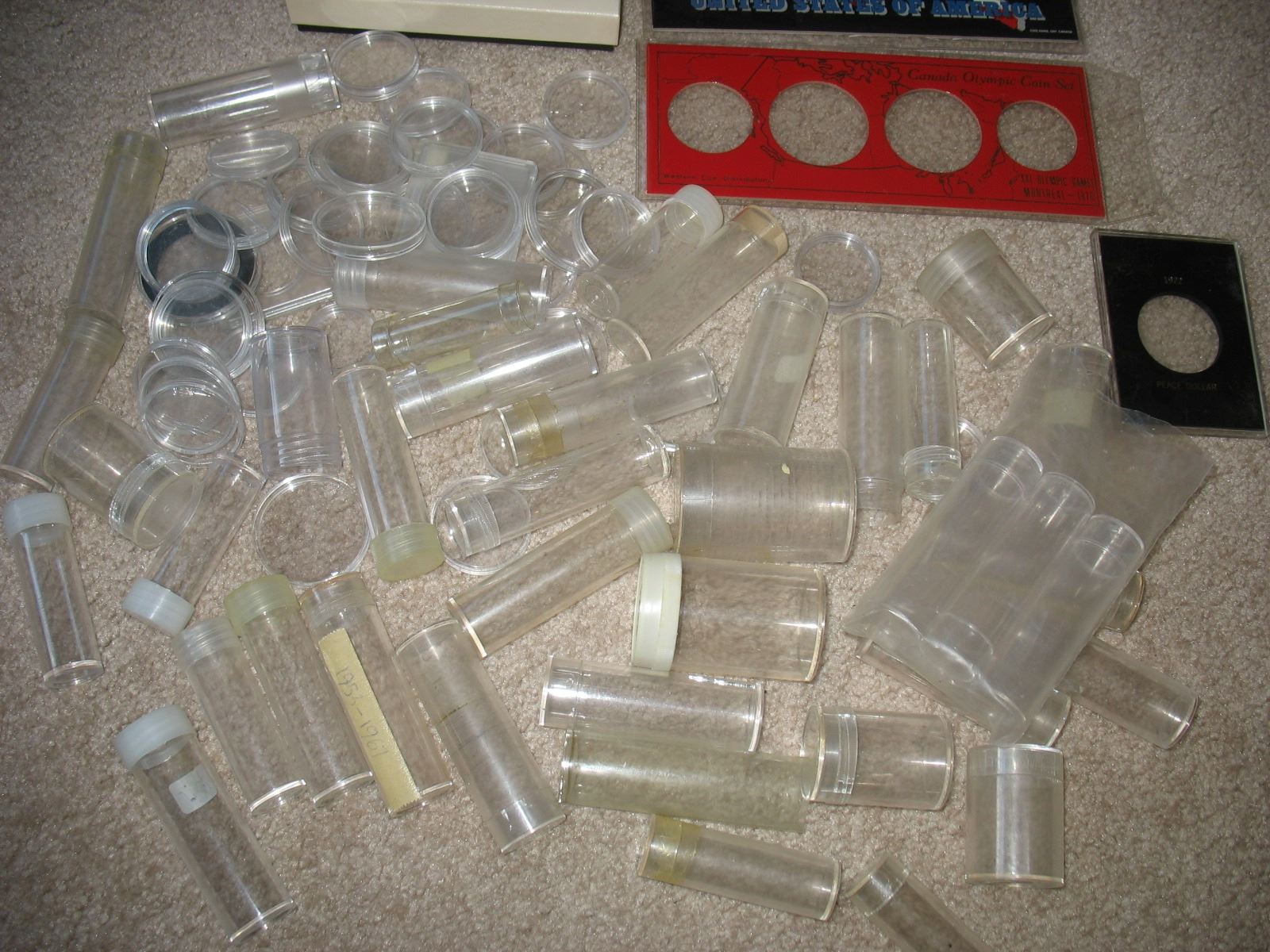 LARGE LOT of USED COIN HOLDERS, COIN TUBES & CAPSULES