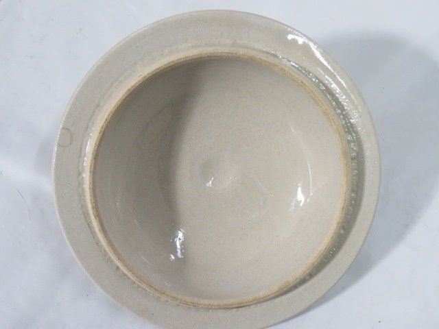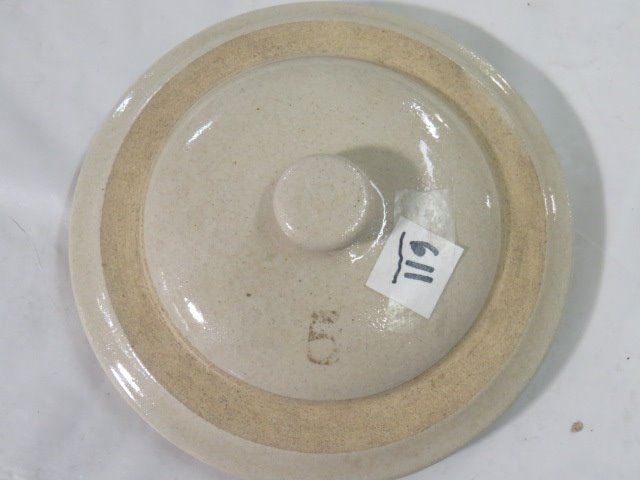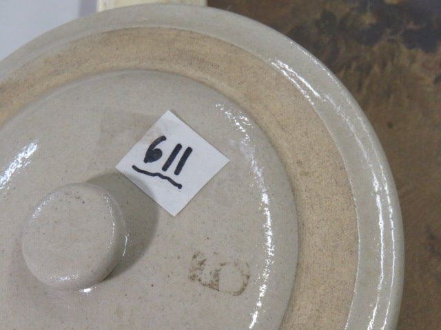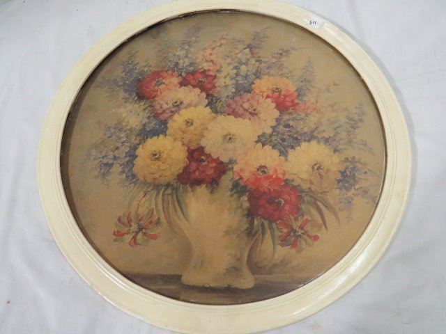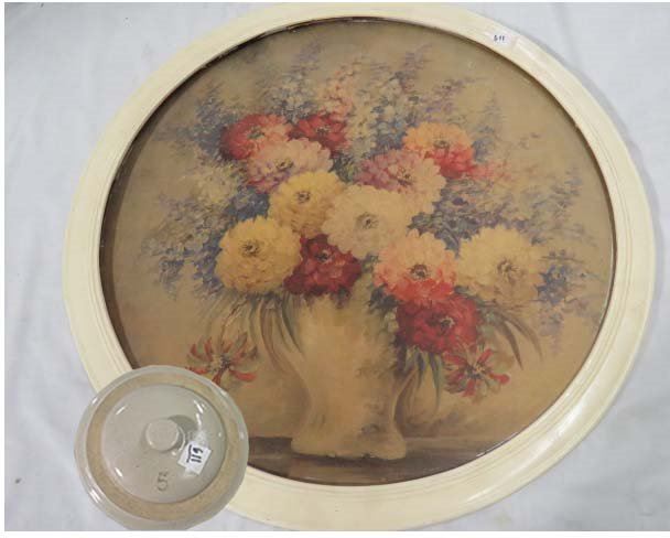 LARGE ROUND IVORY FRAME (W/FLORAL PRINT) & #5 POTTERY LID