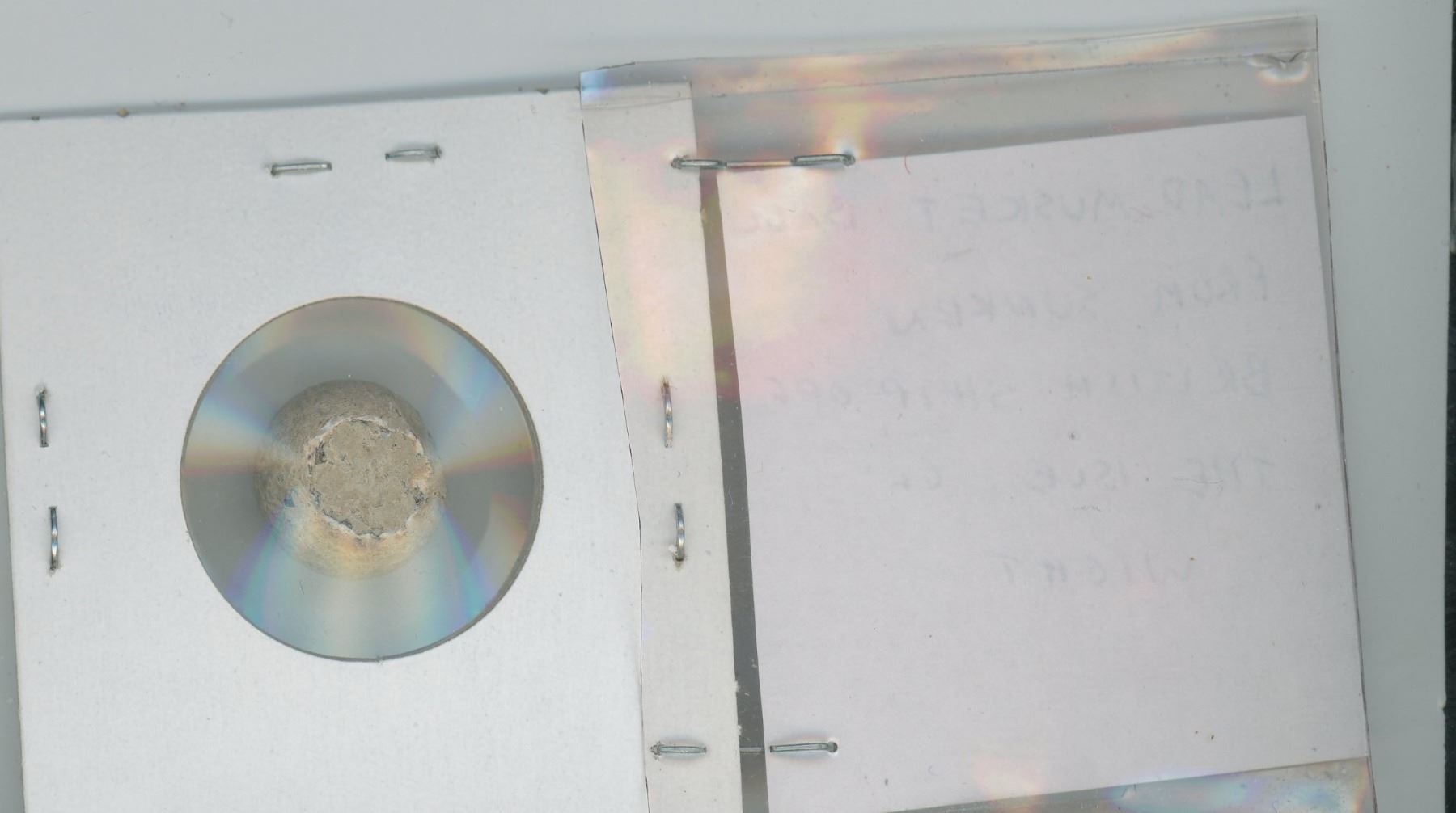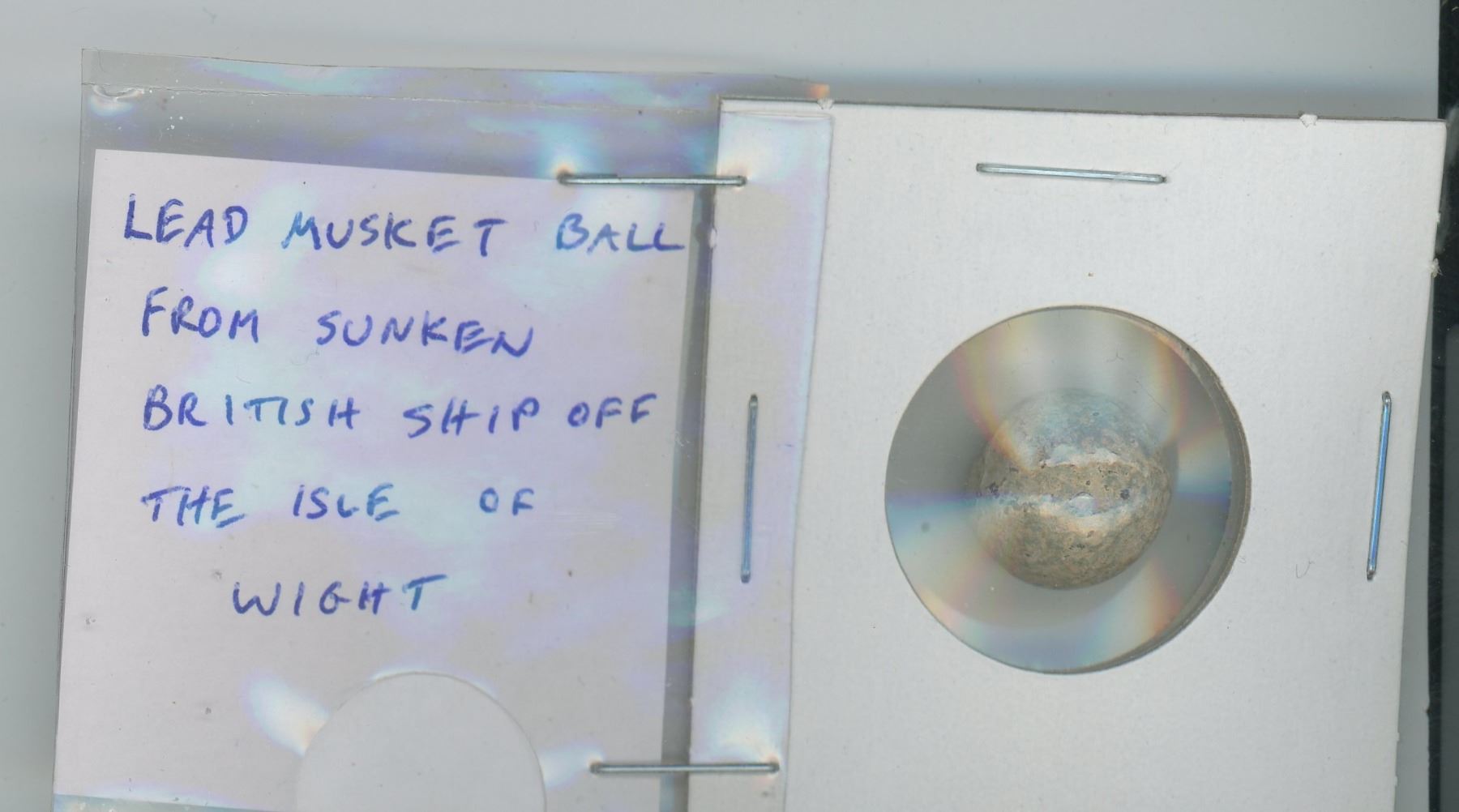 LEAD MUSKET BALL FROM SUNKEN BRITISH SHIP OFF THE ISLE OF WIGHT.