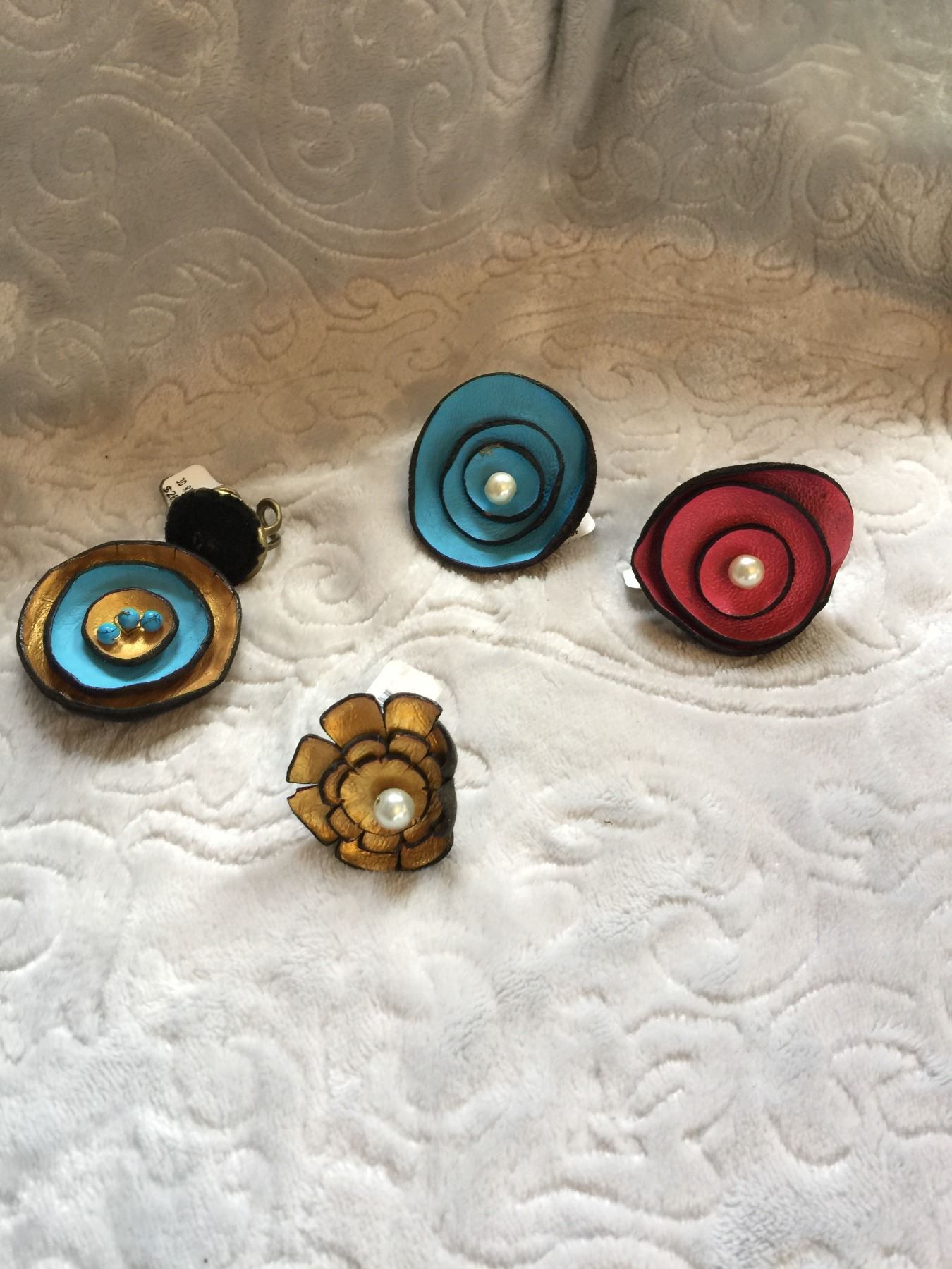LEATHER ROSE BUD RINGS/4X/BLUE,PINK, BRONZE/BLUE, BRONZE/ADJUSTABLE