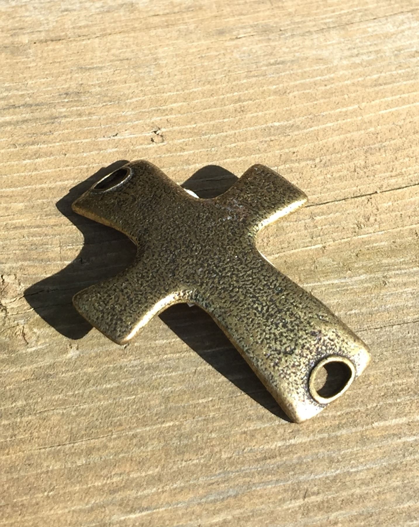 LENNY AND EVA BRASS CROSS / FITS ON THIN CUFF BRACELET OR CHAIN BRACELET OR SILK WRAP BRACELETS