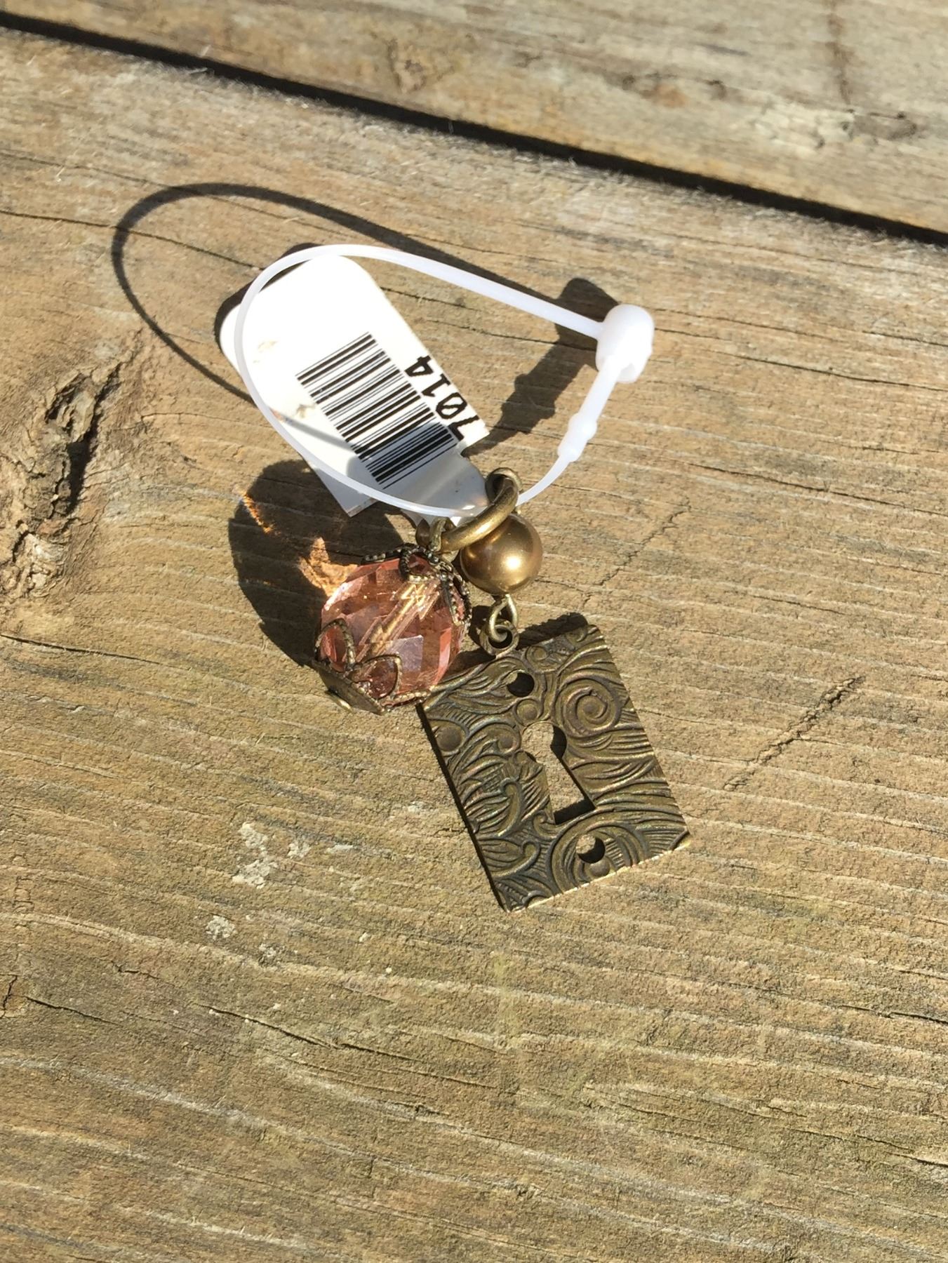 LENNY AND EVA BRASS KEY HOLE/PINK BEAD CHARM/PENDANT