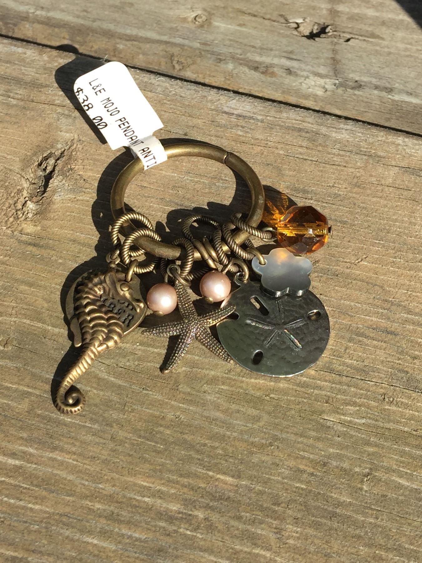 LENNY AND EVA BRASS MOJO CHARM / FITS ON CUFFS, OR CHAIN BRACELET OR NECKLACEBEACH COMBER THEME; STARFISH,SAND DOLLAR,SEA HORSE, SHELL FLOWER,,BEADS/RING MEASURES 1 1/4 INCHES