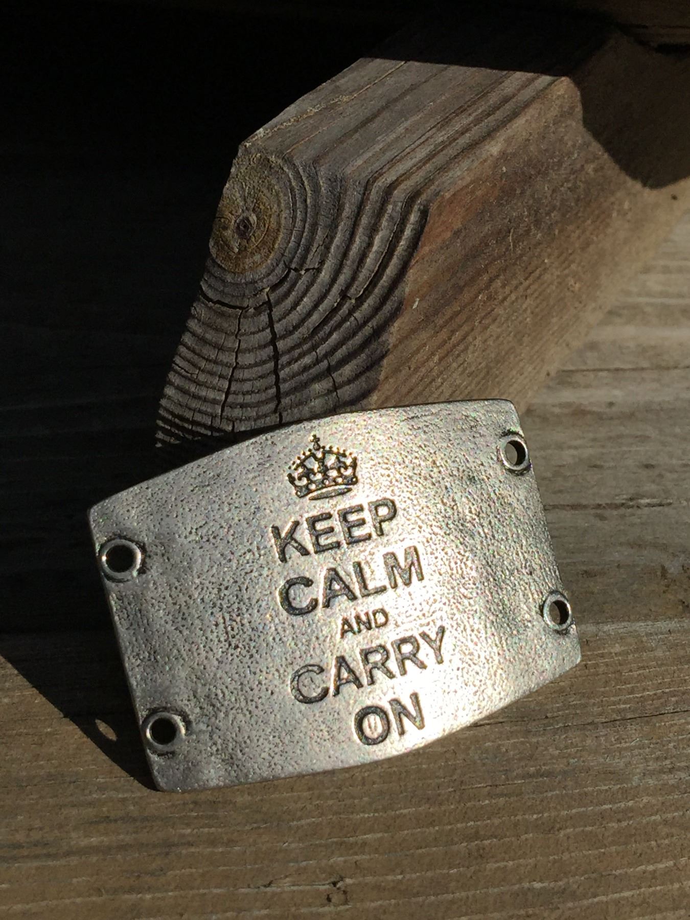 LENNY AND EVA LARGE SILVER SENTIMENT/ FITS ON WIDE CUFF BRACELET /KEEP CALM AND CARRY ON