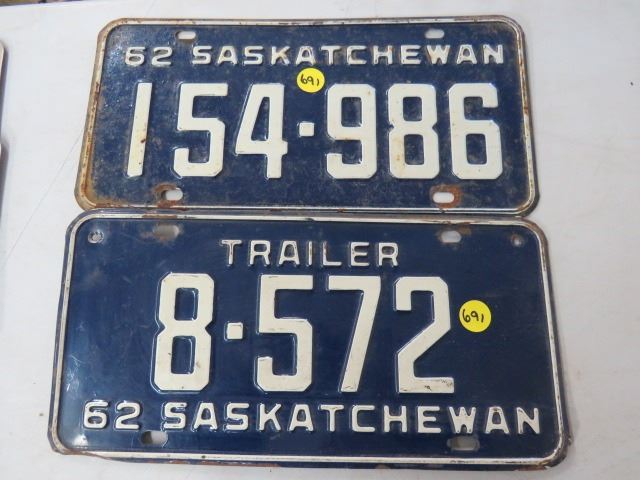LICENSE PLATES (SASKATCHEWAN) *QTY 2* (1962 * 1 IS TRAILER)