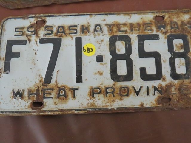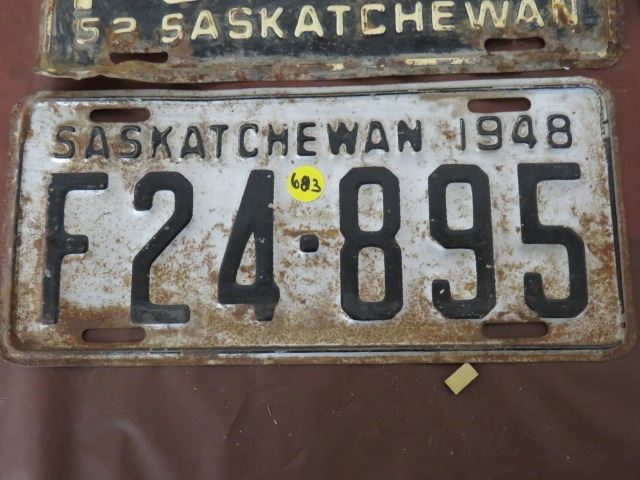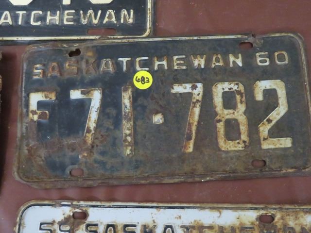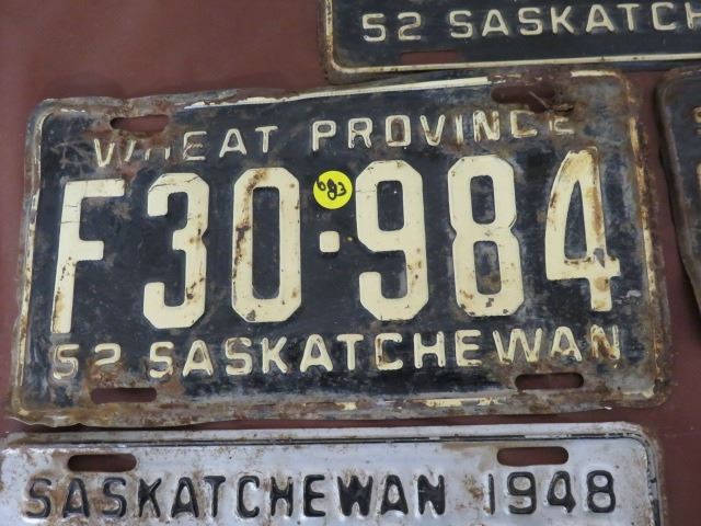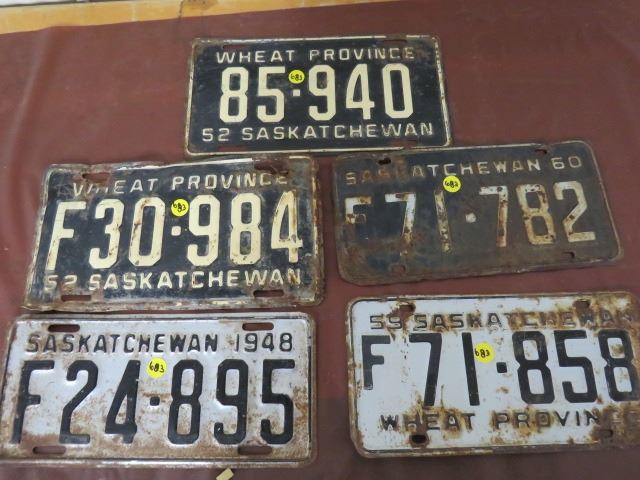 LICENSE PLATES (SASKATCHEWAN) *QTY 5* (1952, FARM 1948, 52, 59, 60)