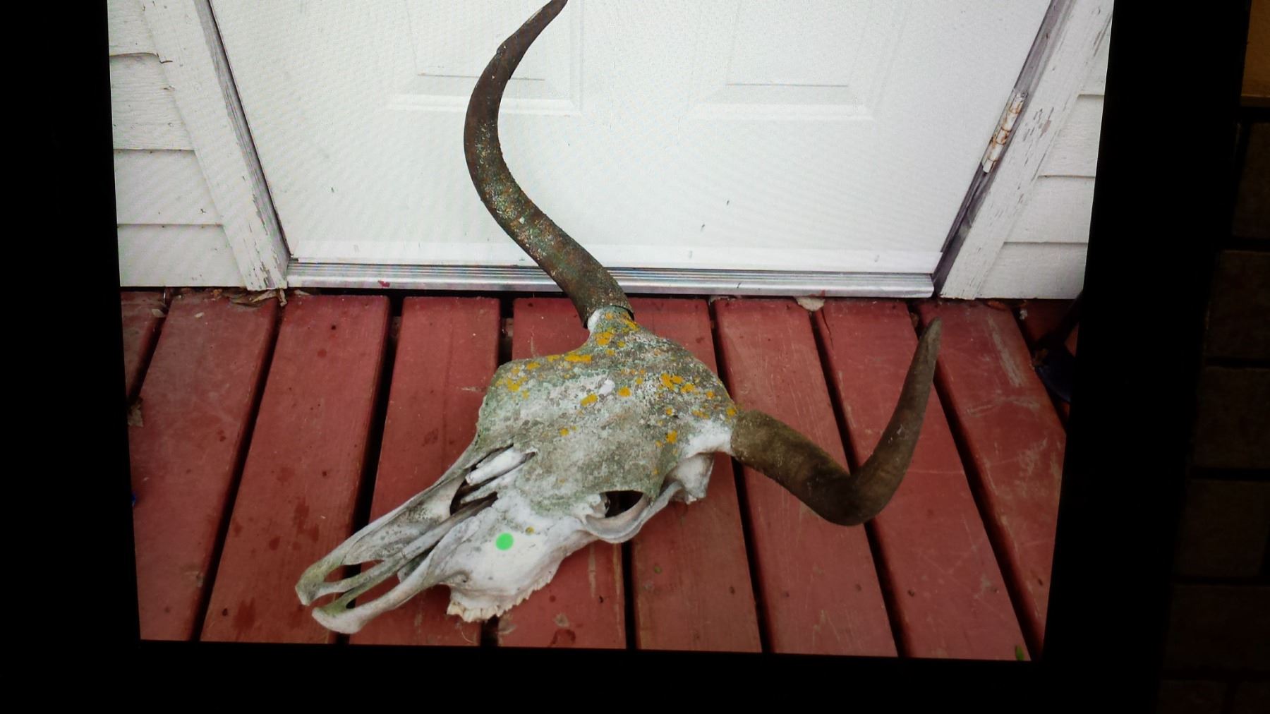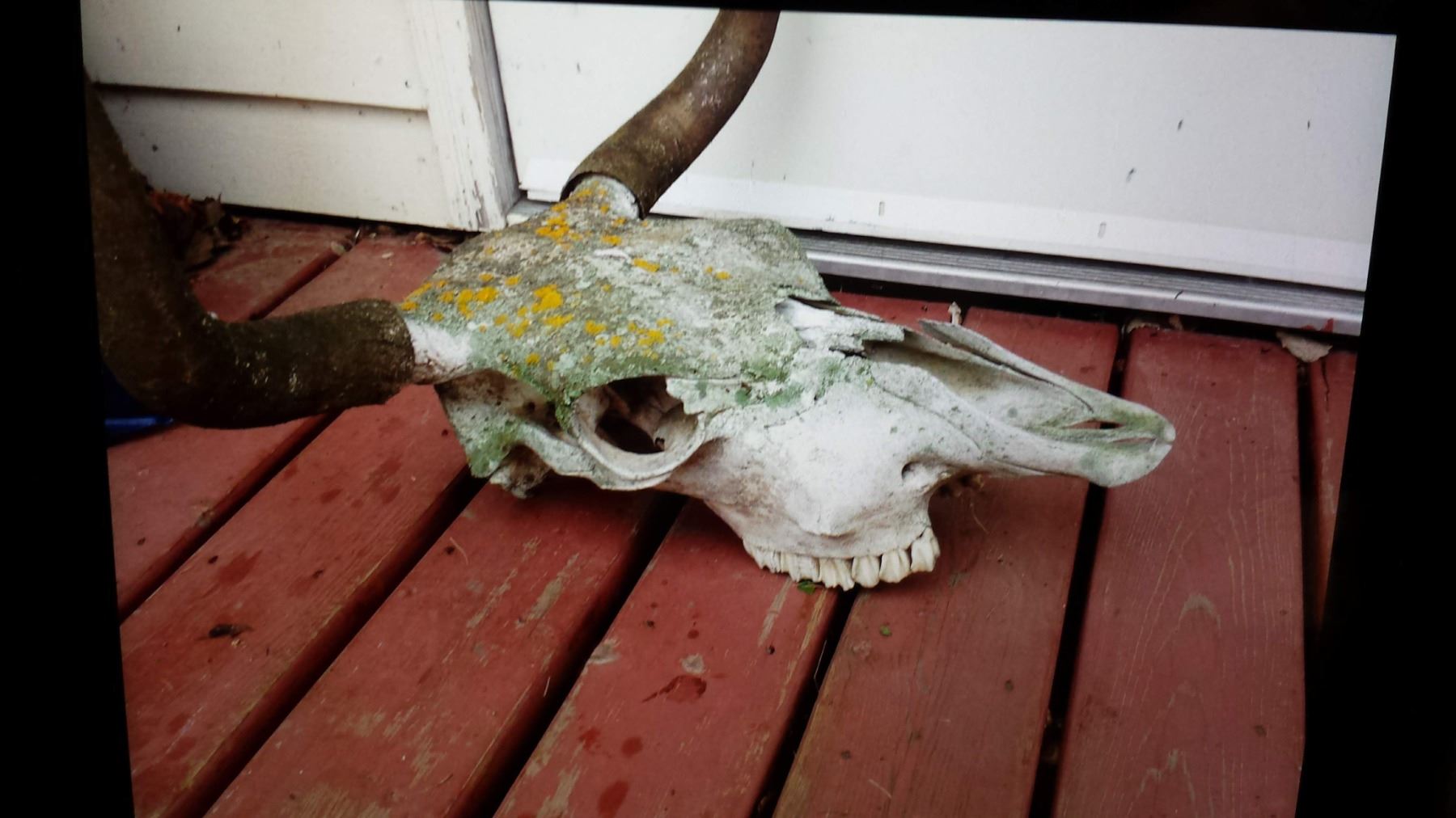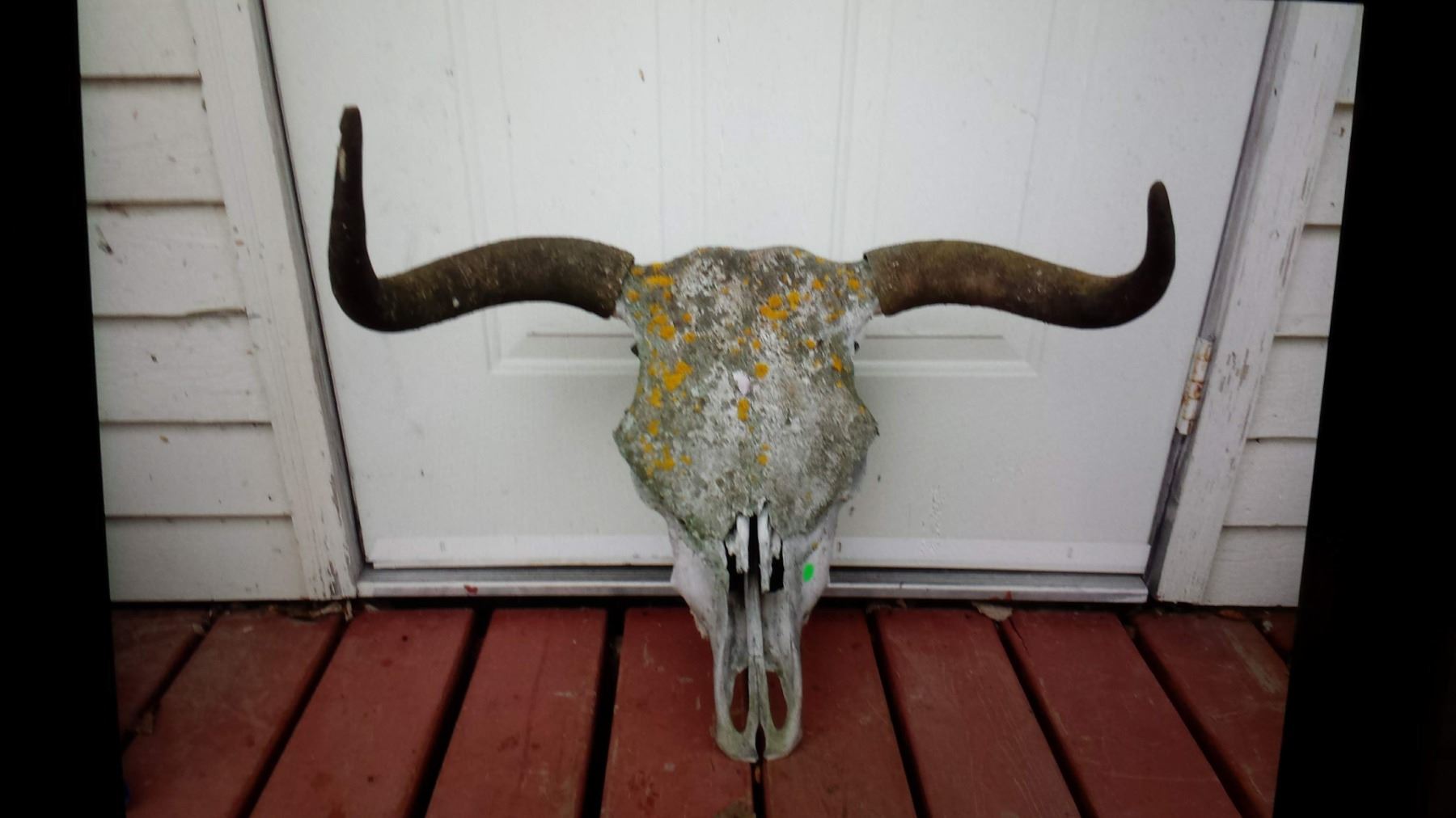 LONG HORN SKULL. HORNS INCLUDE OUTSIDE COVERS.