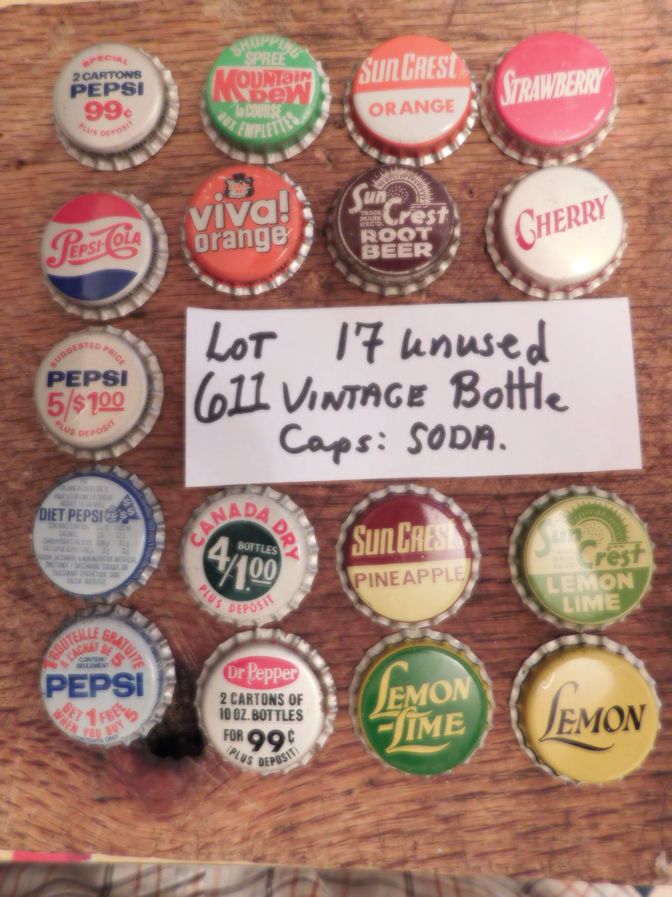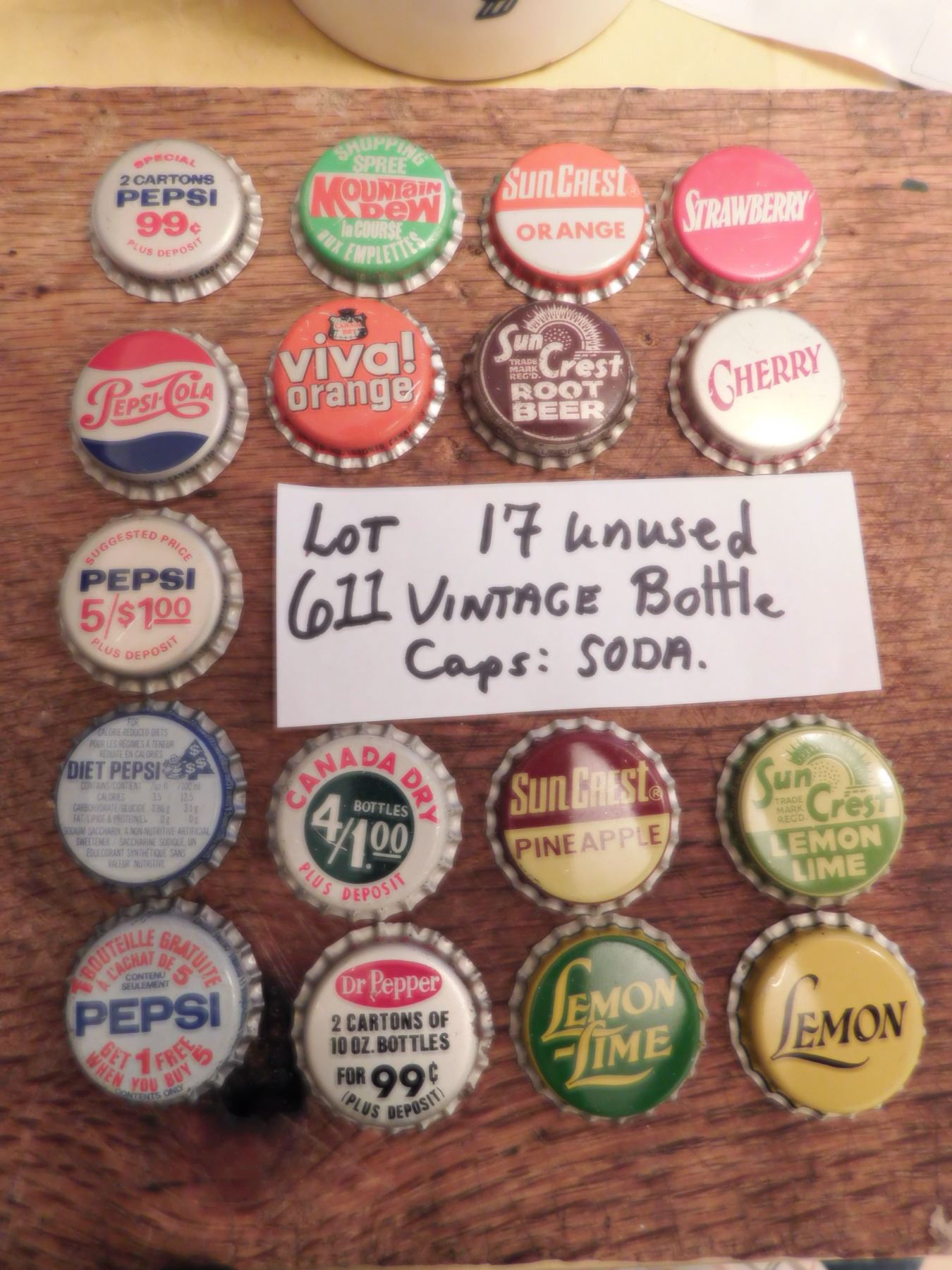 LOT 611 17 UNUSED VINTAGE POP/SODA BOTTLE CAPS