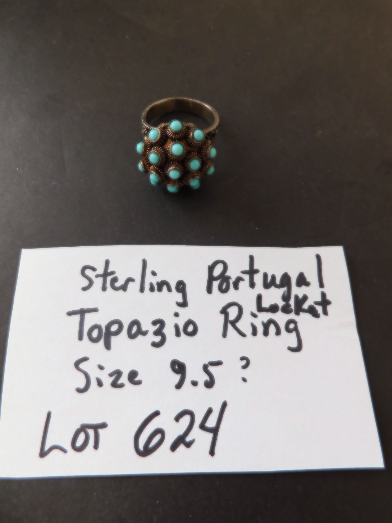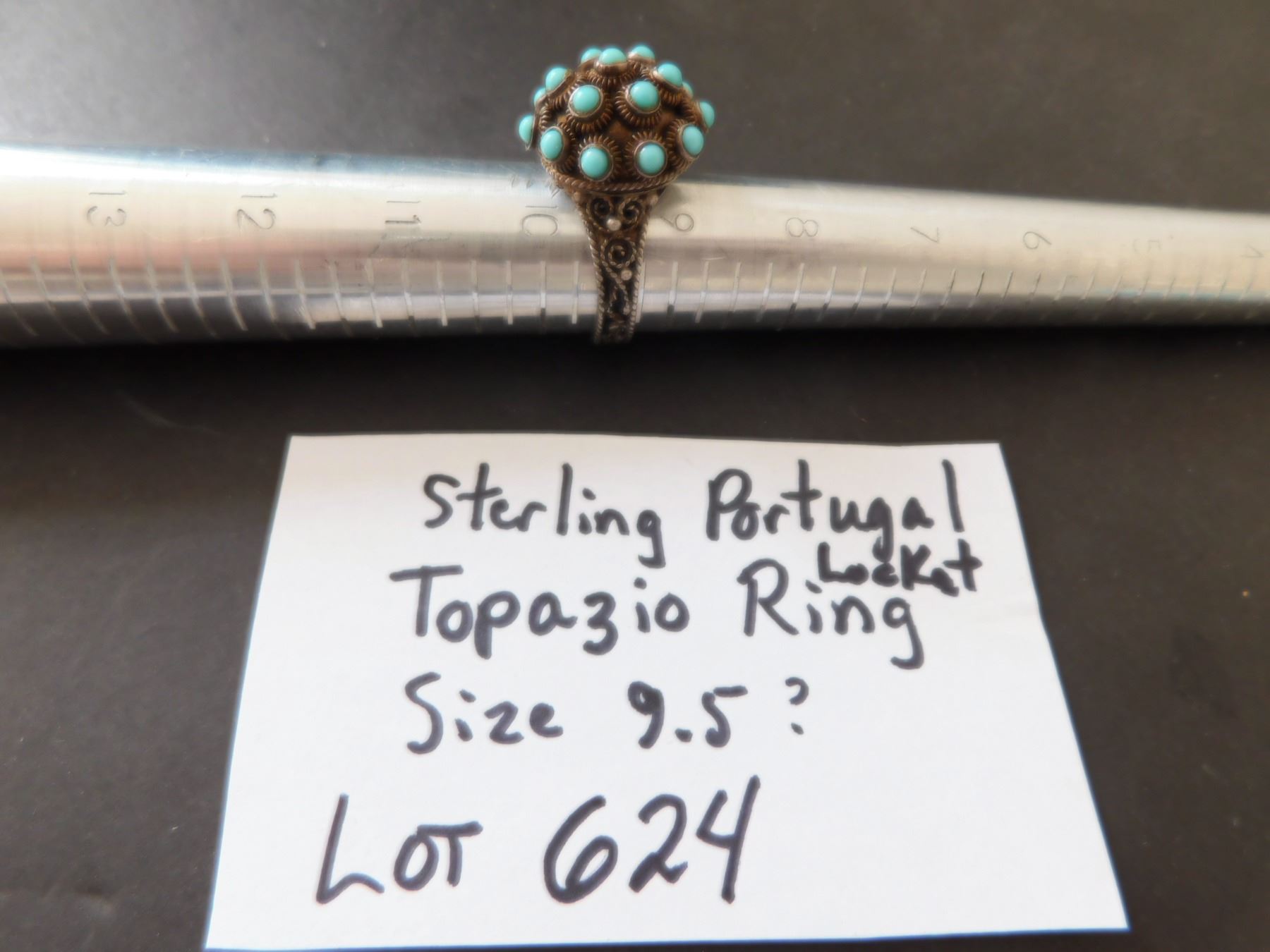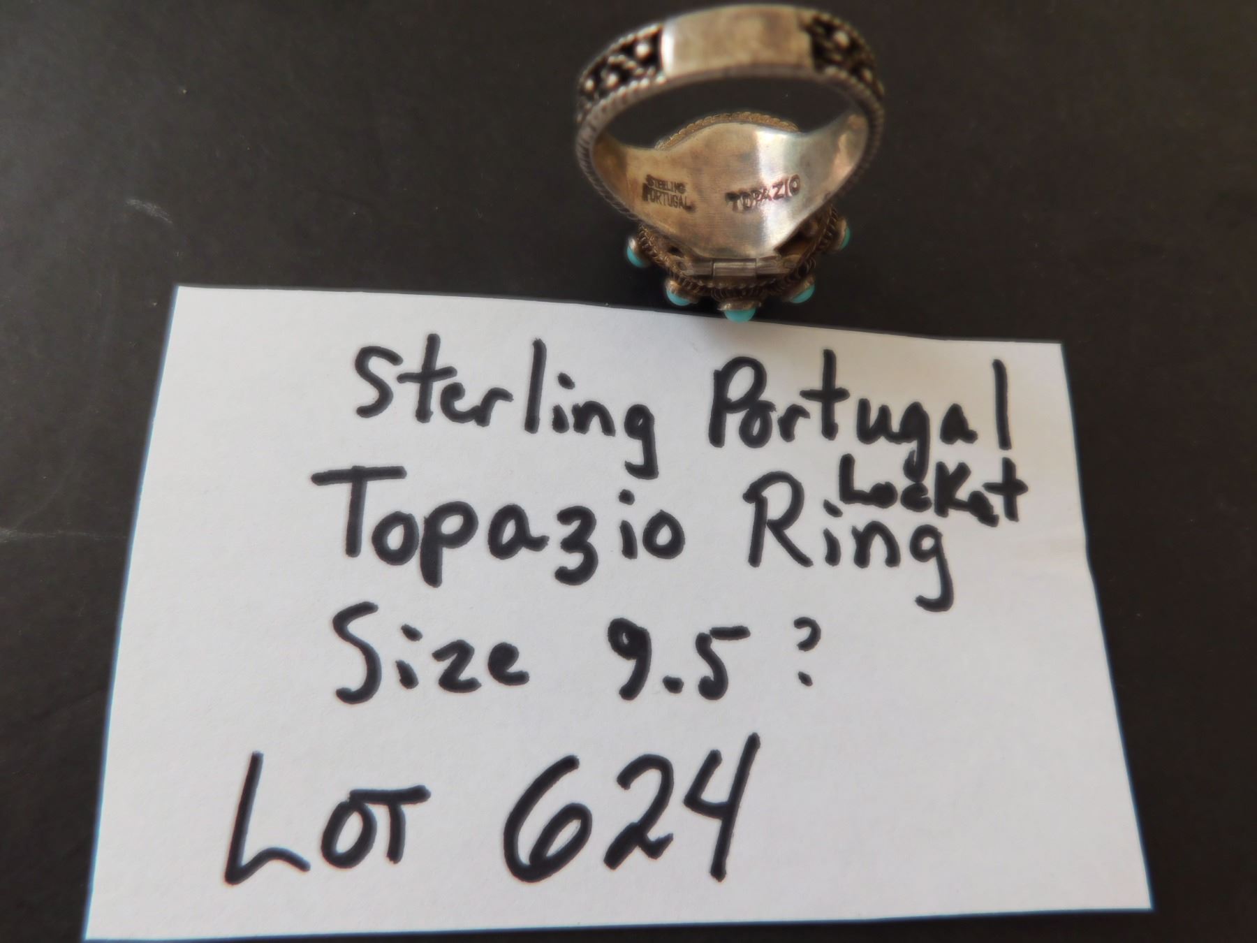 LOT 624 STERLING PORTUGAL TOPAZIO LOCKET RING