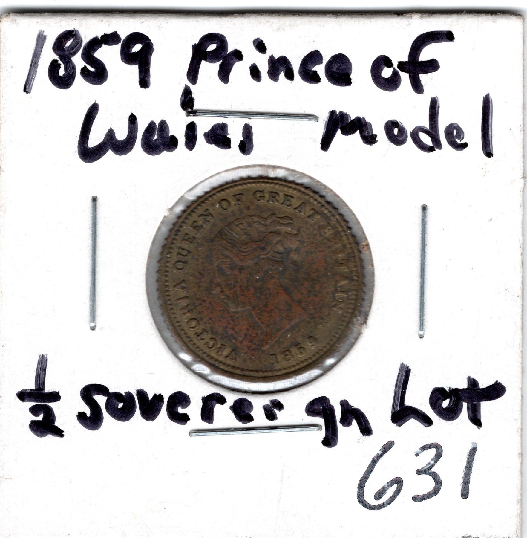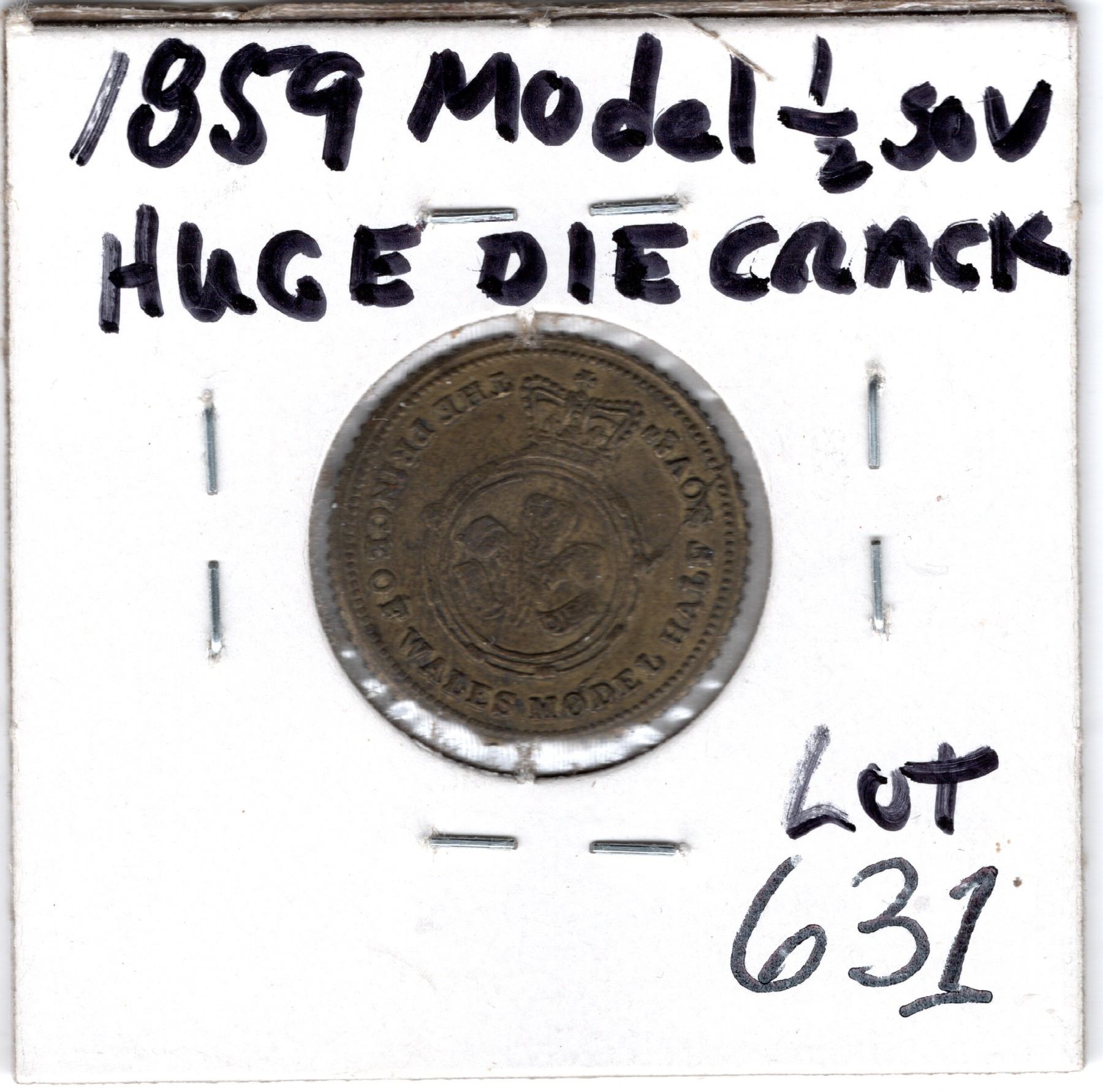 LOT 631 1859 MODEL ½ SOVEREIGN, HUGE DIE CRACK PRINCE OF WALES MODEL