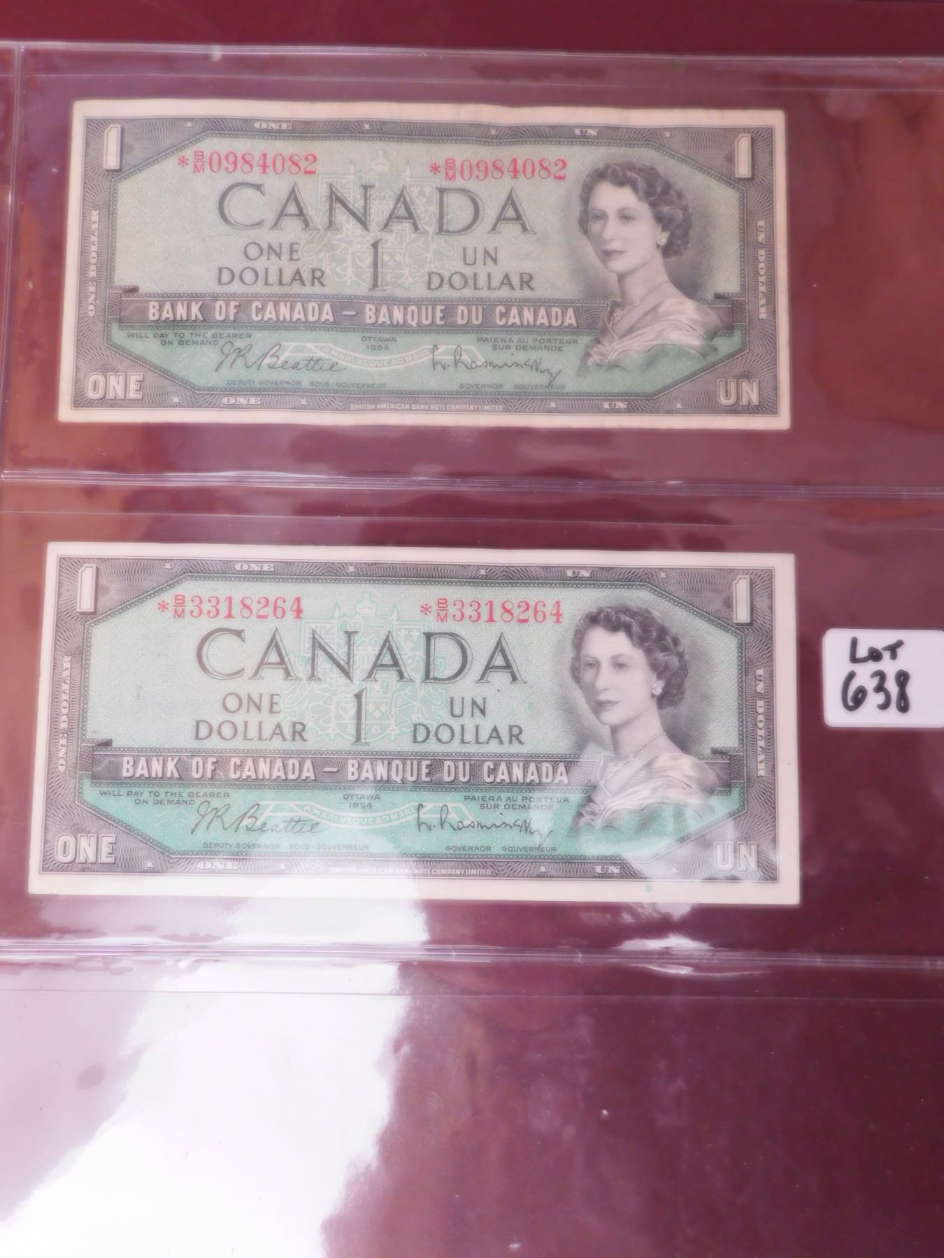 LOT 638 TWO ASTERISK PREFIX 1954 SERIES $1 BILLS