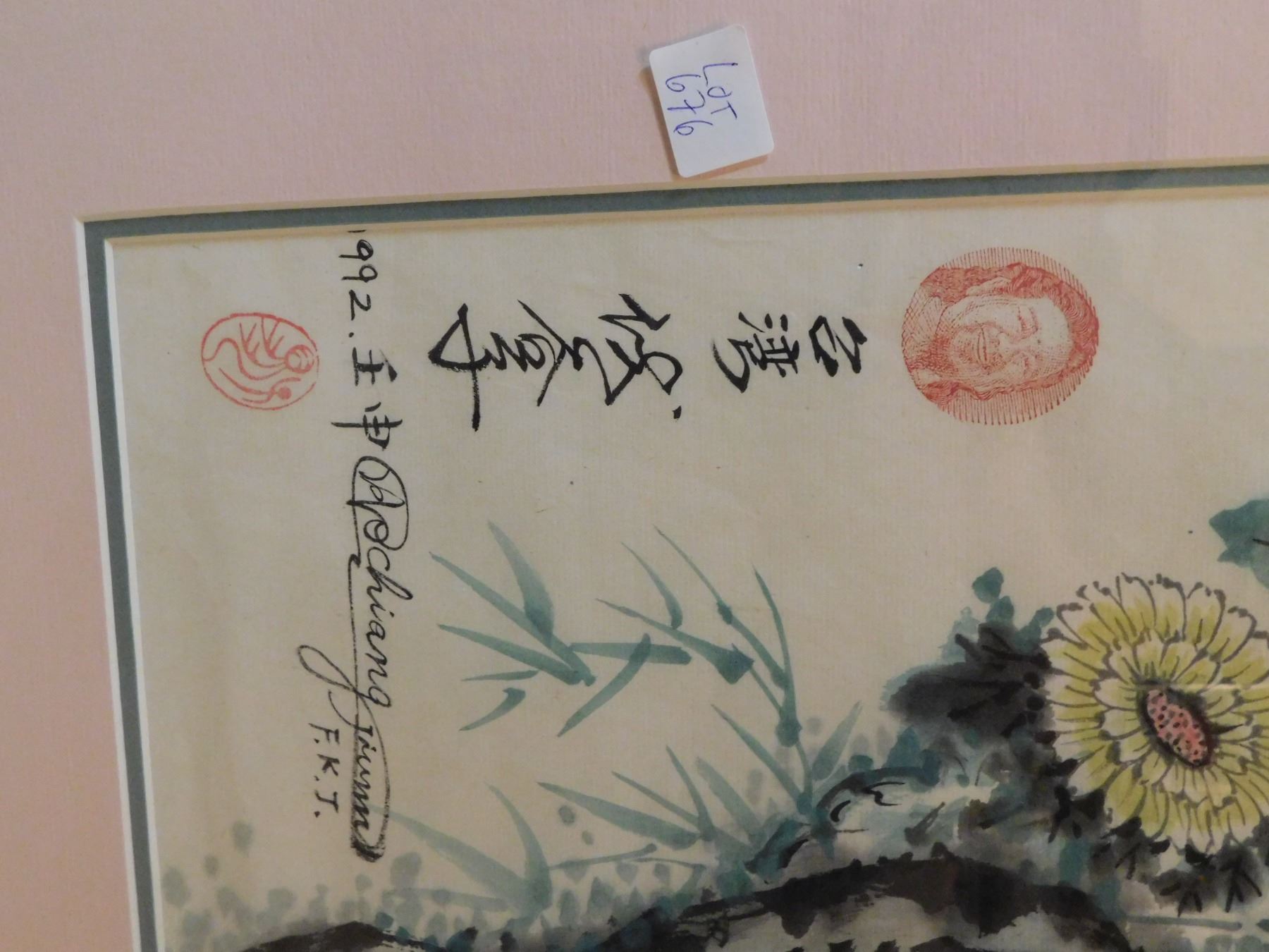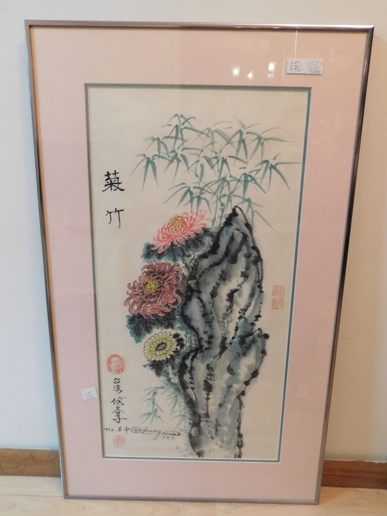 LOT 676 18 ½” BY 31” FRAME SCROLL ARTWORK