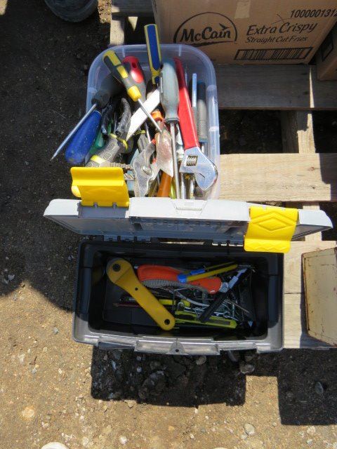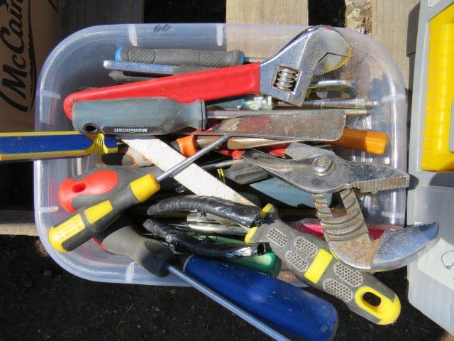 LOT INCLUDING TOOL BOX AND ASSORTED TOOLS (PLIERS, CRESCENTS, SCREWDRIVERS, ETC…)