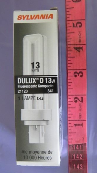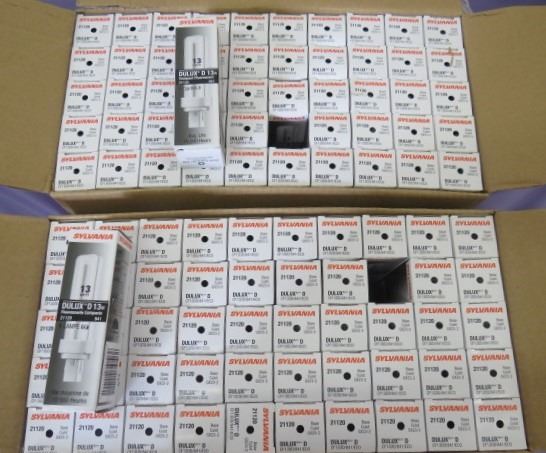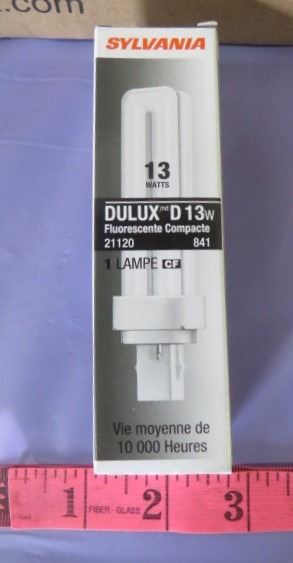 LOT OF 100 LIGHTBULBS (SYLVANIA DULUX D 13 WATT) *10000 HOUR LIFE* (COMPACT FLUORESCENT)