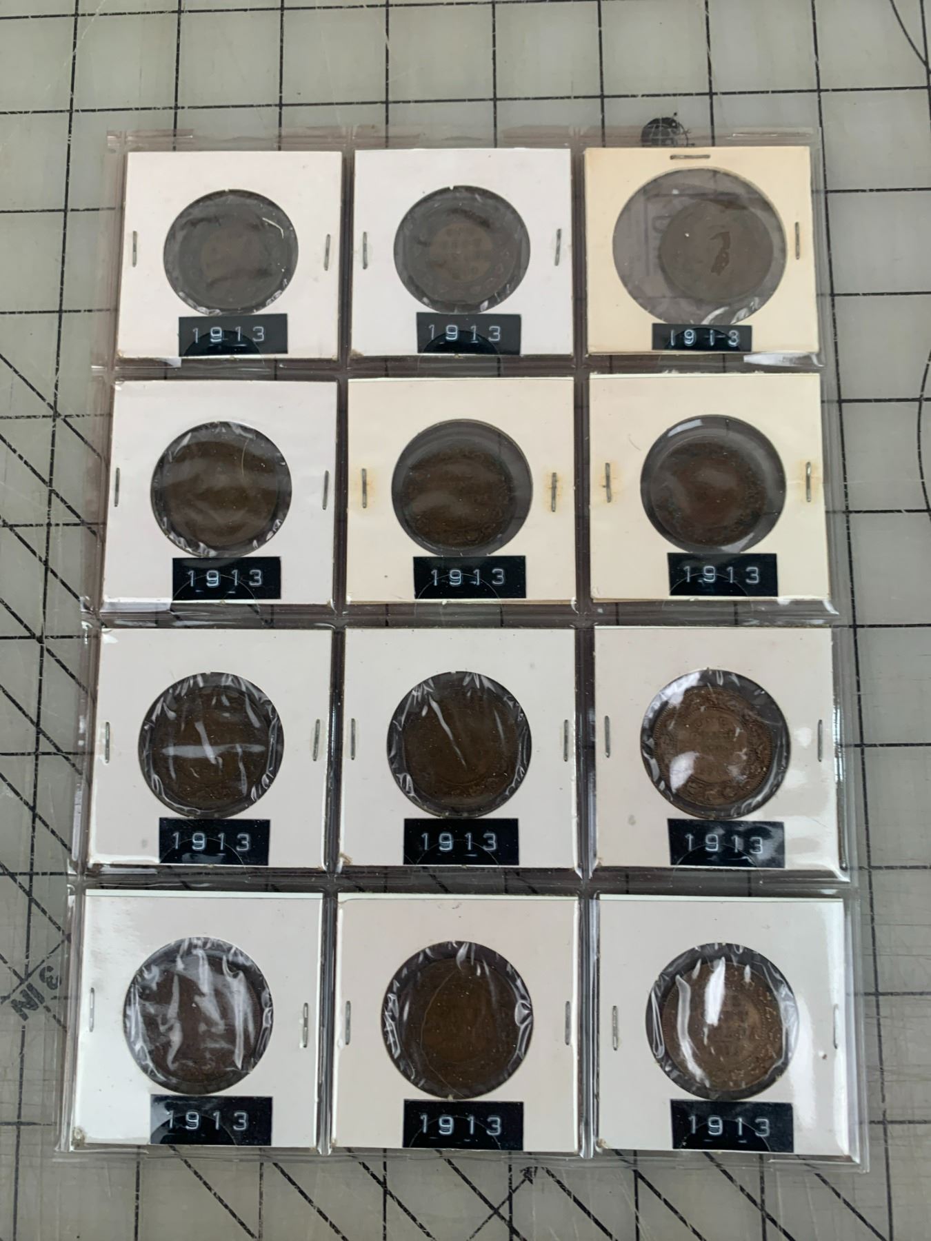 LOT OF 12 1913 CANADA LARGE CENT PENNIES