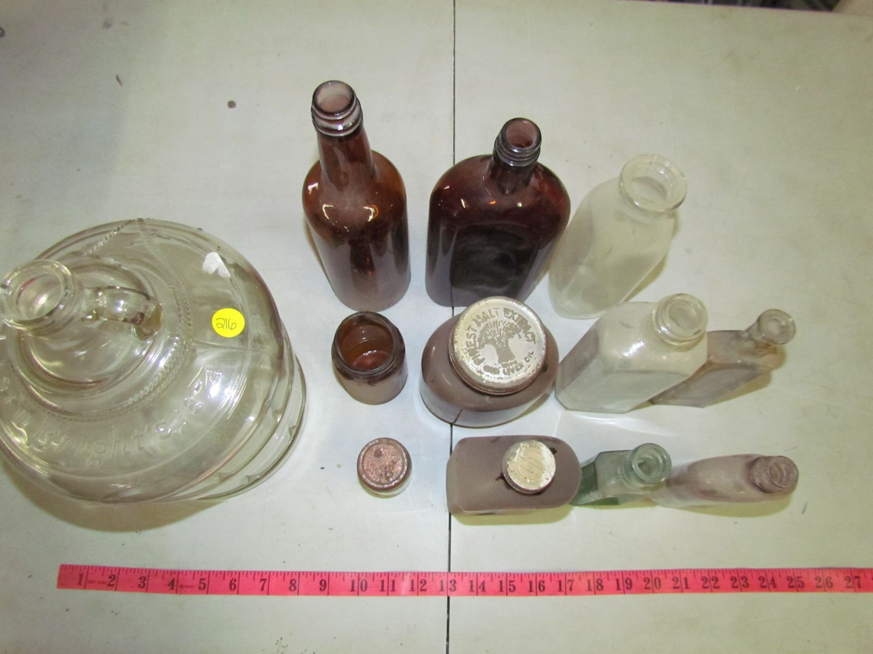 LOT OF 12 GLASS ITEMS (JUG, BOTTLES)