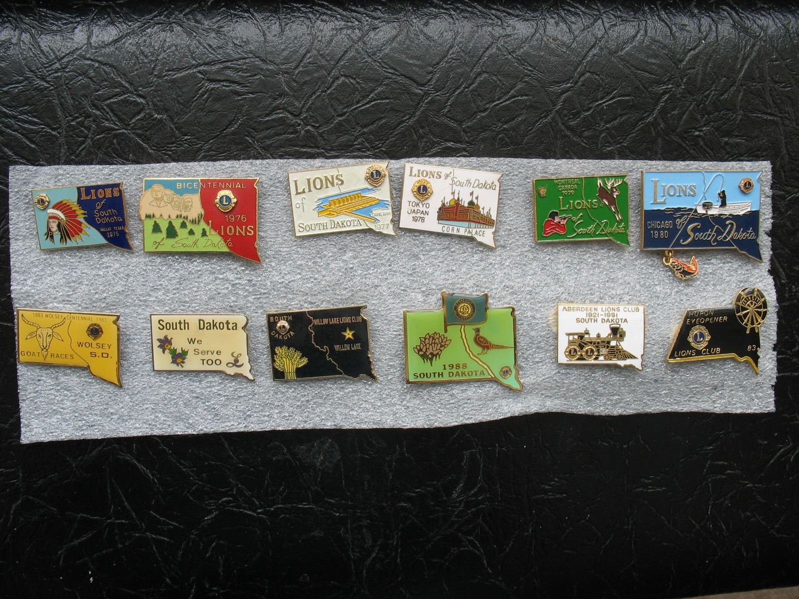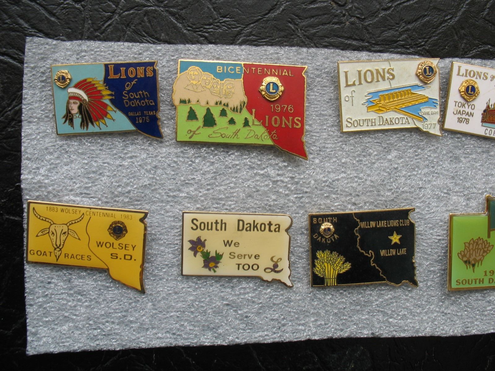LOT OF 12 LIONS CLUB PINS - SOUTH DAKOTA - All Different