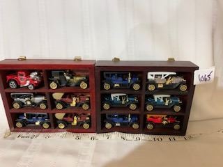 LOT OF 12 VINTAGE CARS IN WOODEN DISPLAY