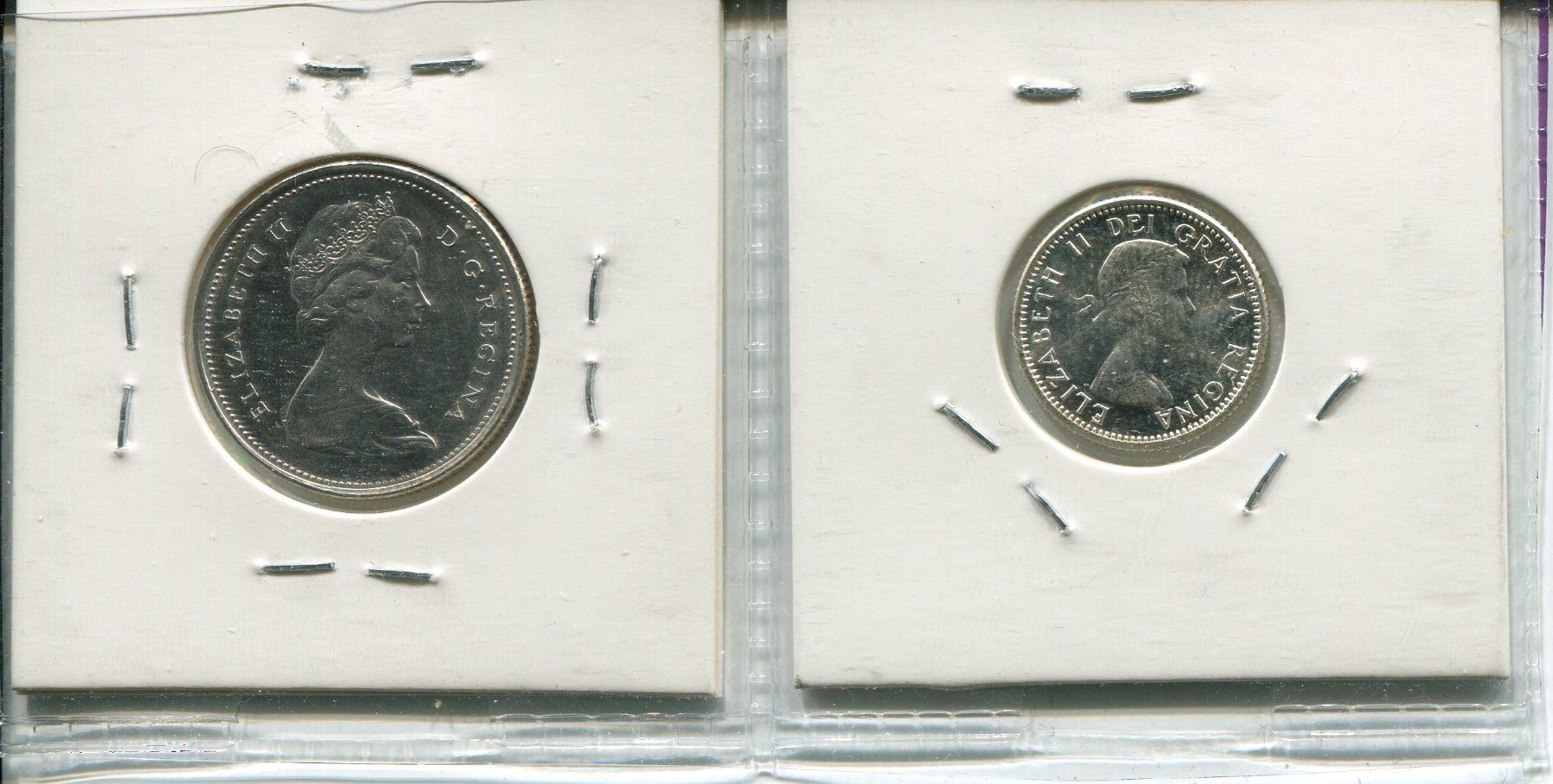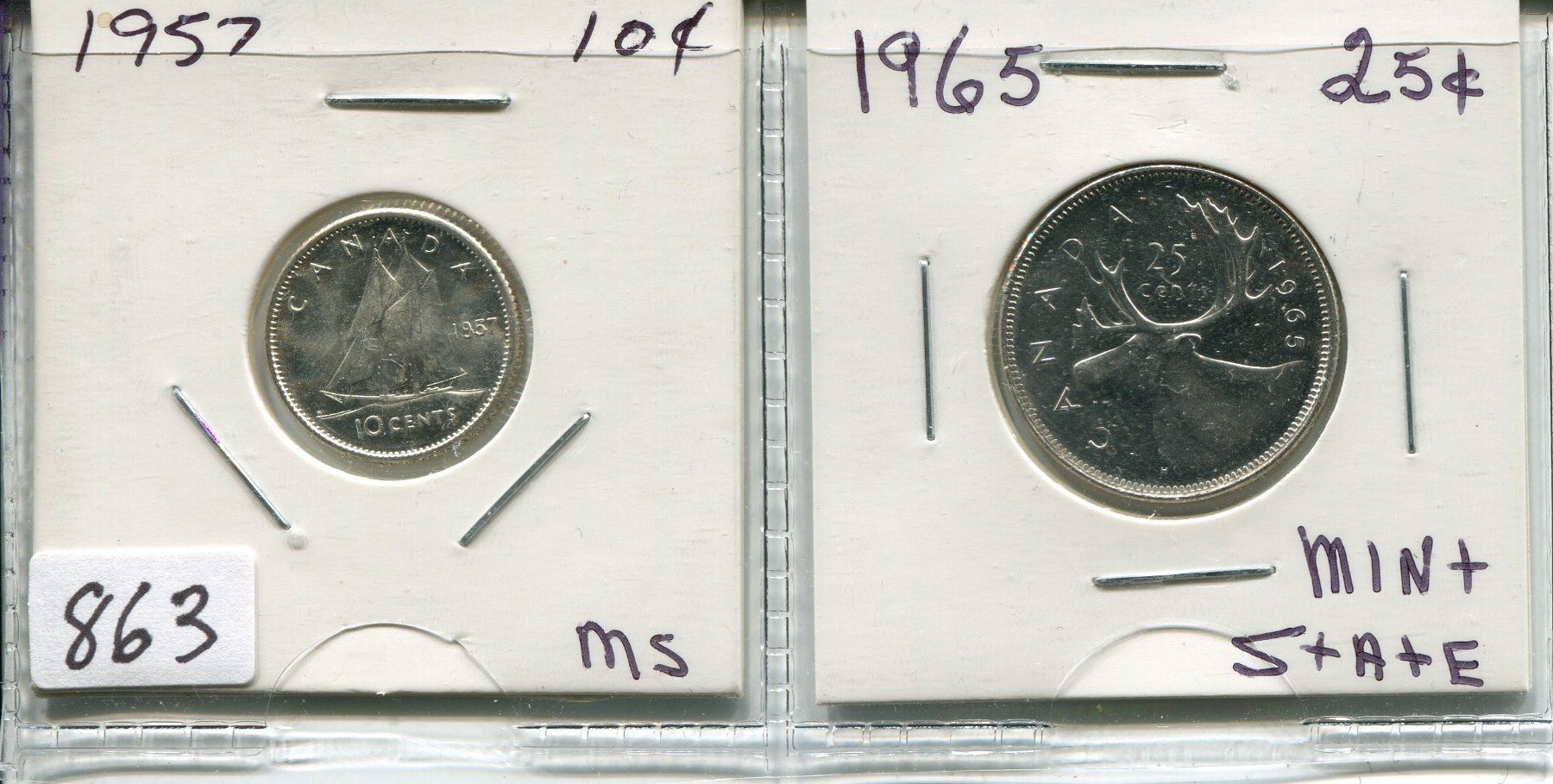 LOT OF 2 1957 CNDN 10 CENT PC & 1965 CNDN 25 CENT PC
