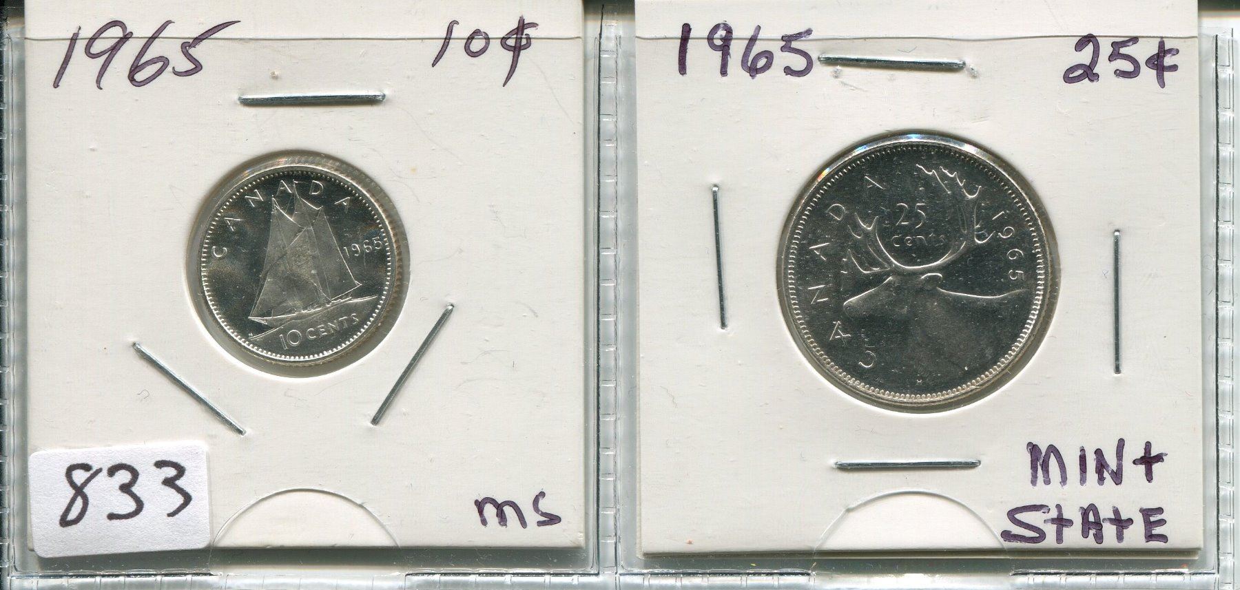 LOT OF 2 - 1965 CNDN 10 CENT PC & 1965 CNDN 25 CENT PC