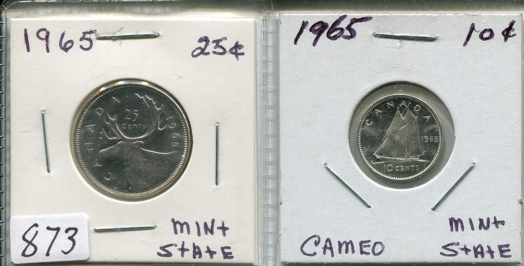 LOT OF 2 1965 CNDN 25 CENT PC & 1965 CNDN 10 CENT PC