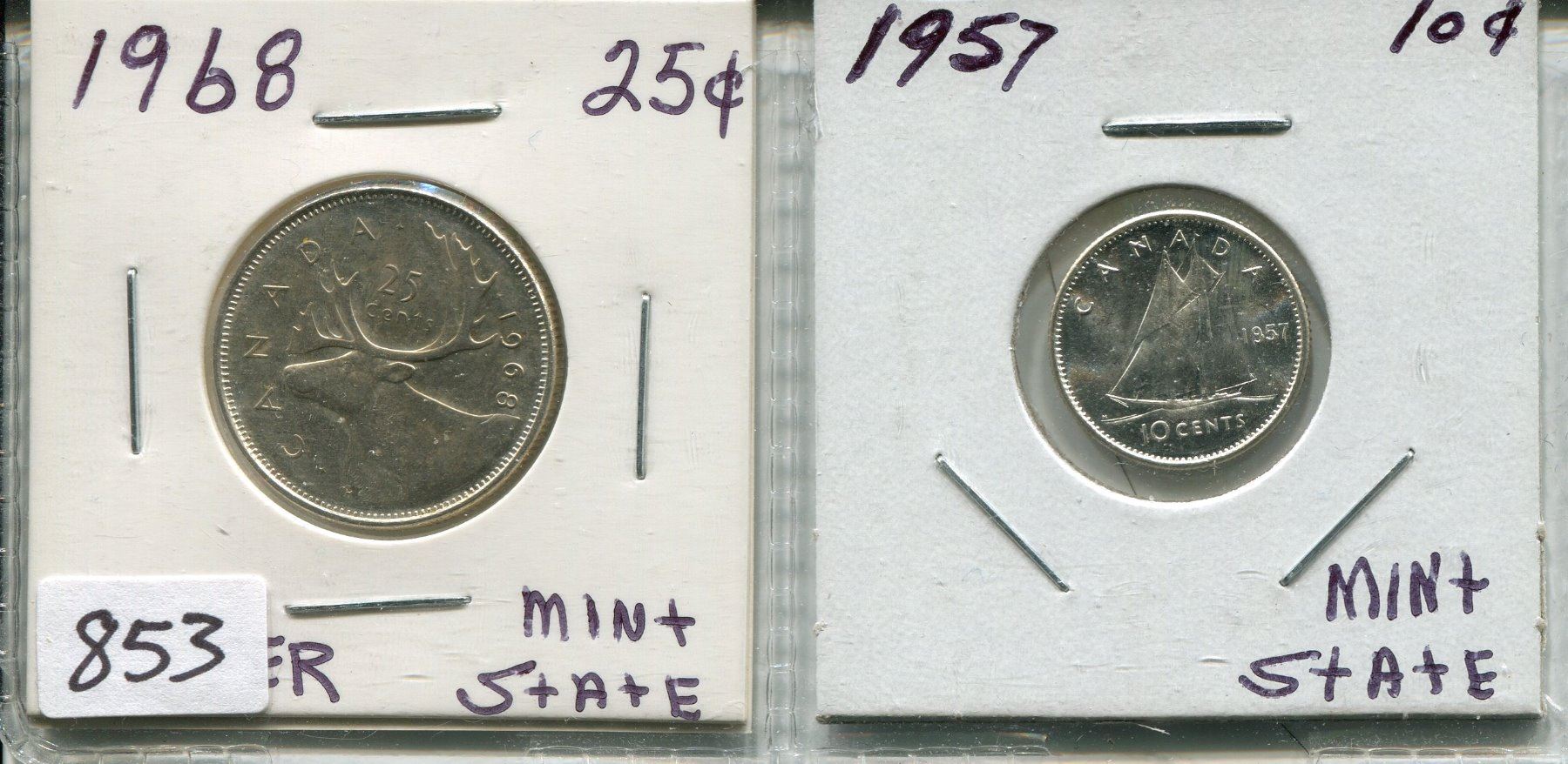 LOT OF 2 1968 CNDN 25 CENT PC & 1957 CNDN 10 CENT PC