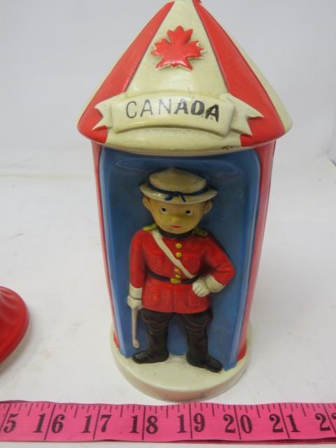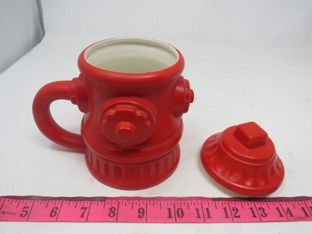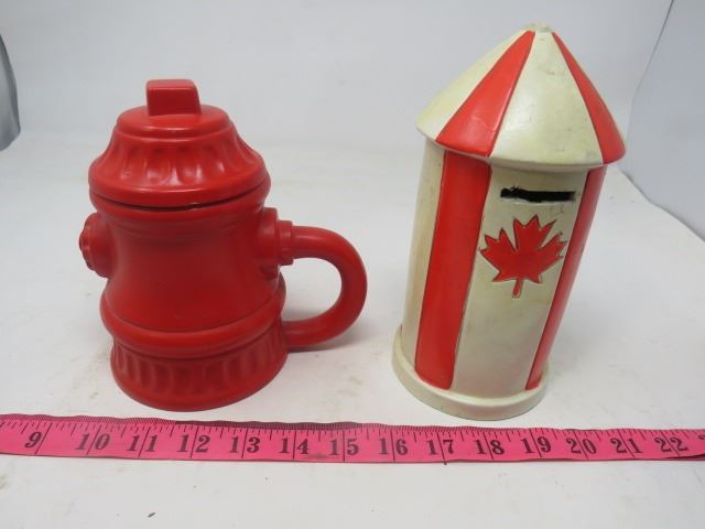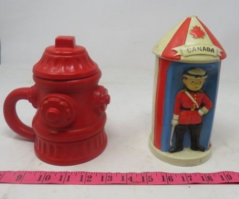 LOT OF 2 CERAMIC ITEMS (R.C.M.P. BANK) *FIRE HYDRANT MUG WITH LID*