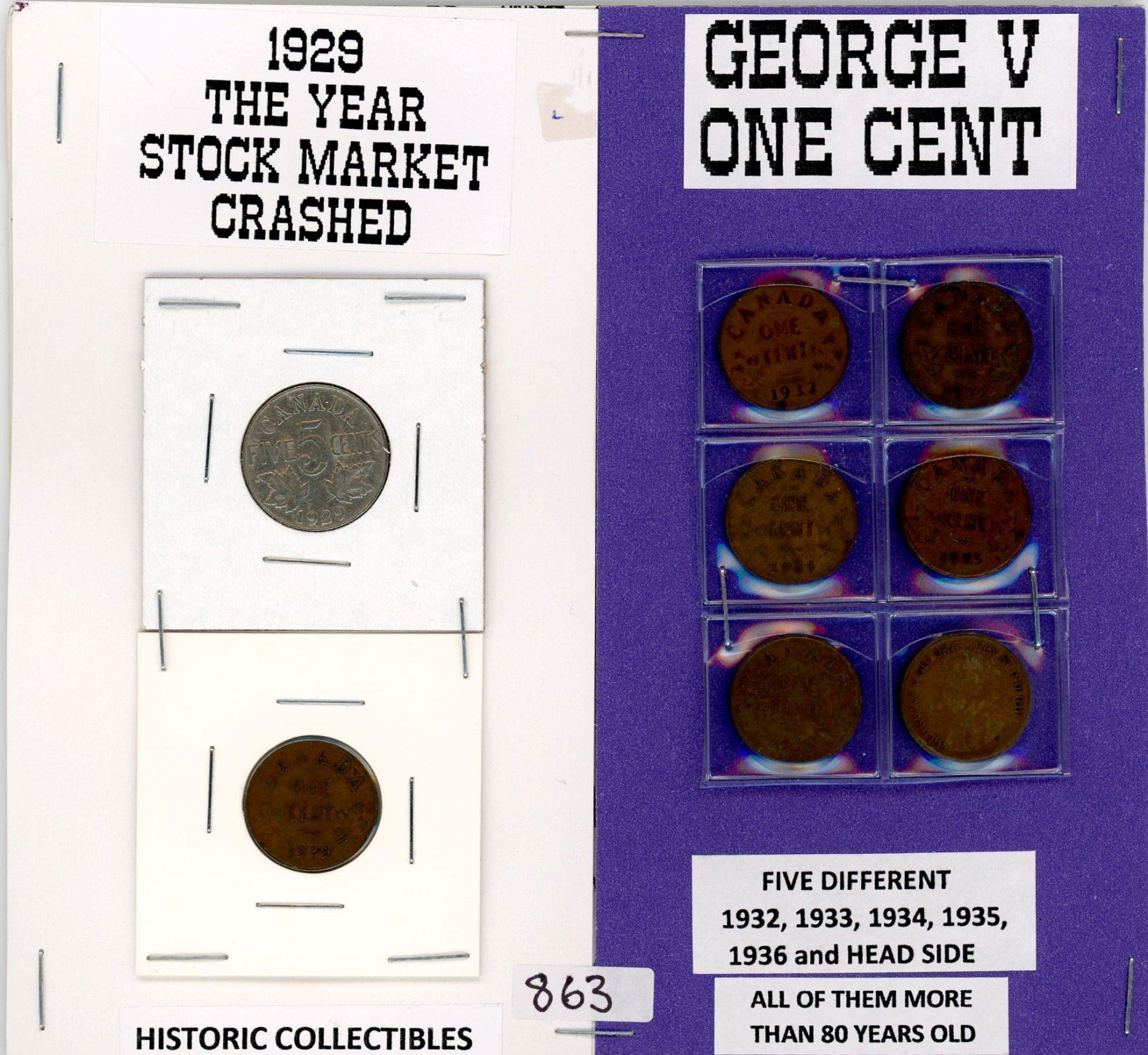 LOT OF 2- FIVE CENT COINS AND 6- ONE CENT COINS (.5 CENT=1929, .1 CENT=1932-32-33-34-35-36)