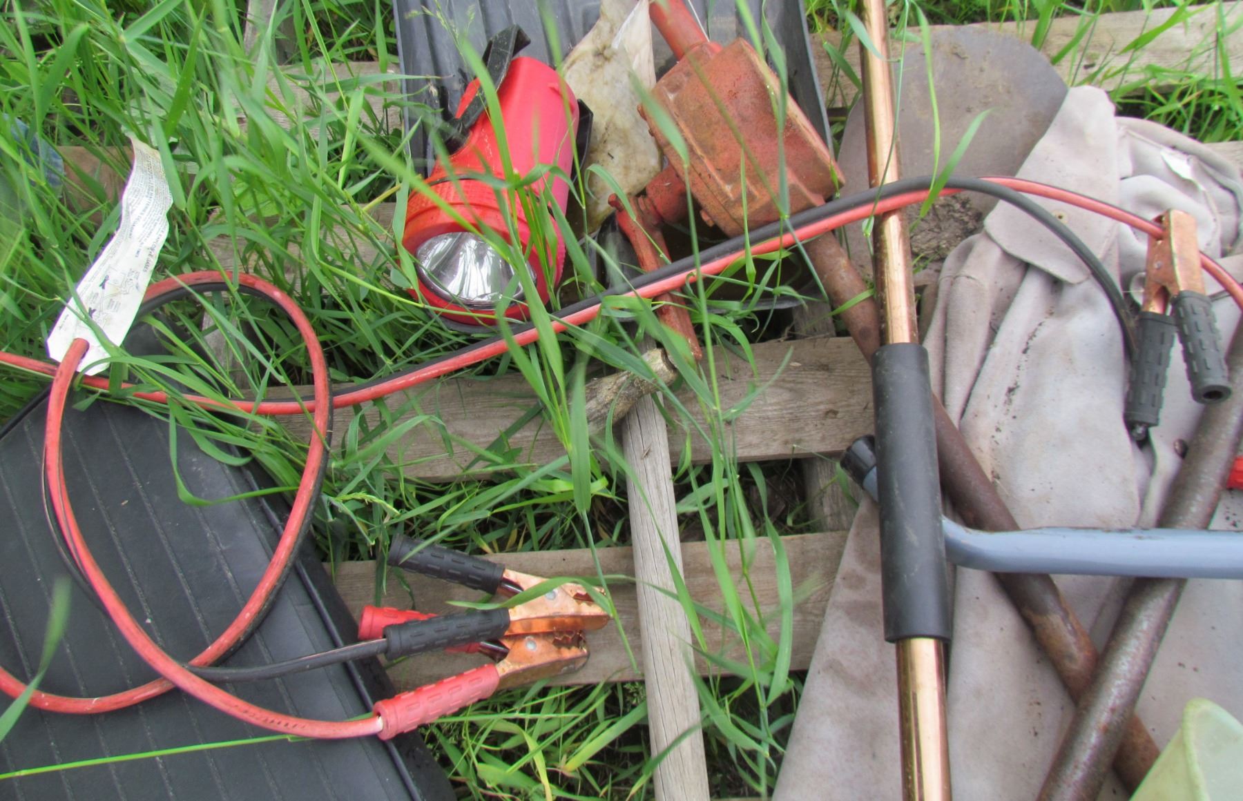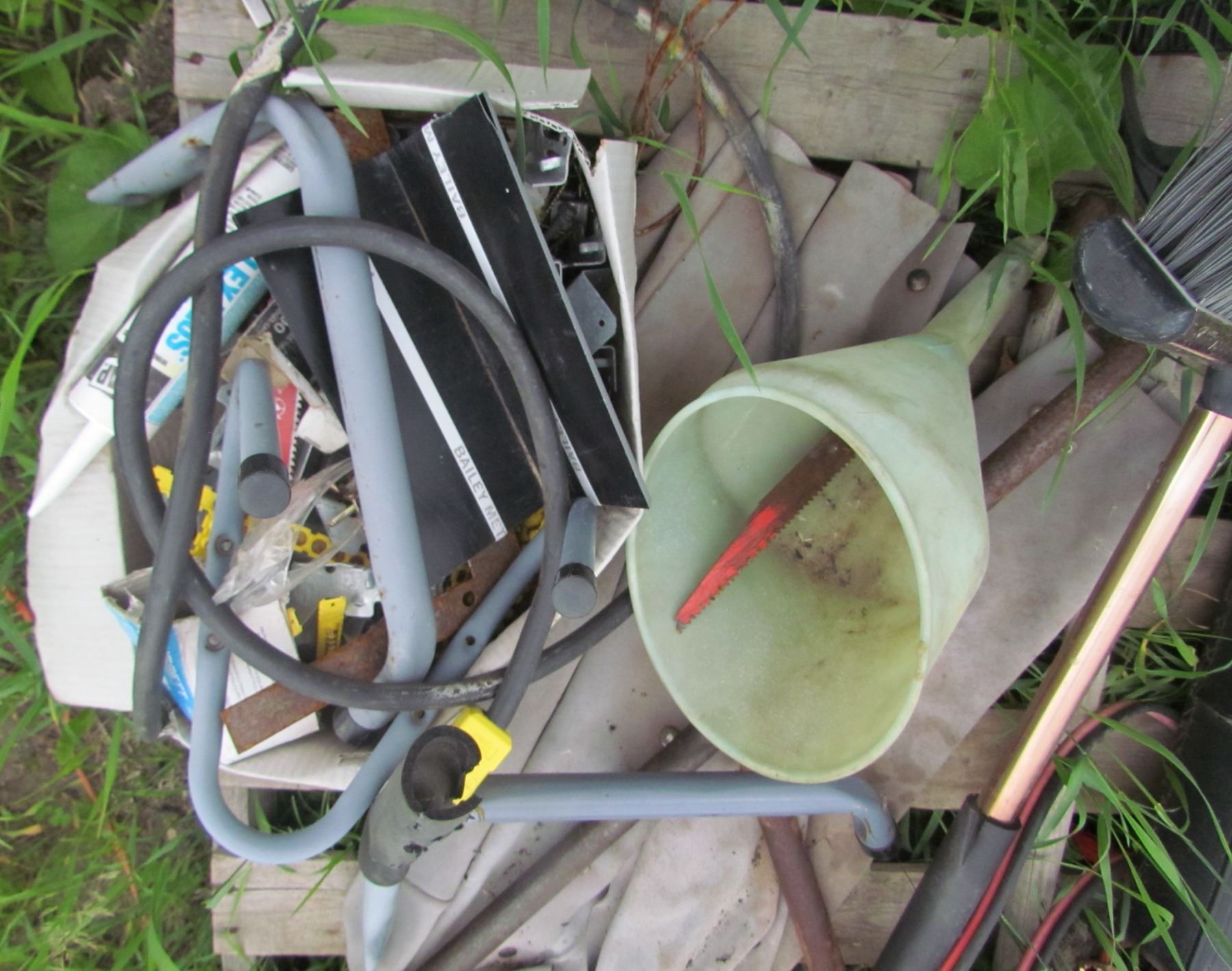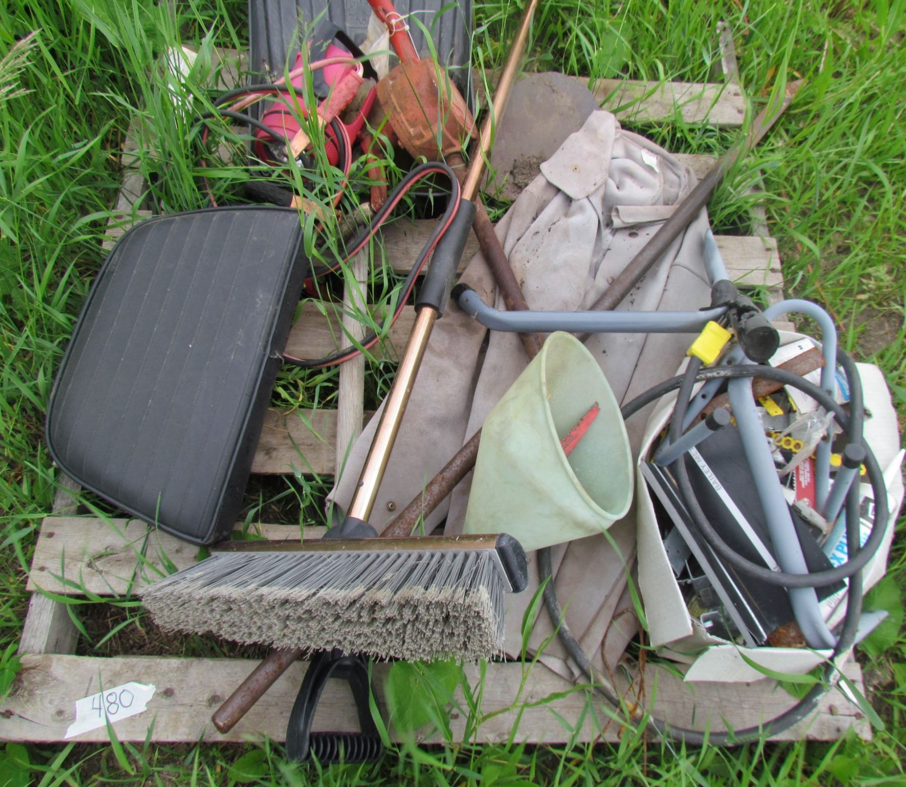 LOT OF 2 PALLETS OF MISC ITEMS (2 X 16" TIRES) * 1 X DONUT 14" WITH COVER* (SHOVEL, FLASHLIGHT, JUMPER CABLES, ETC)