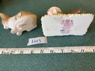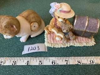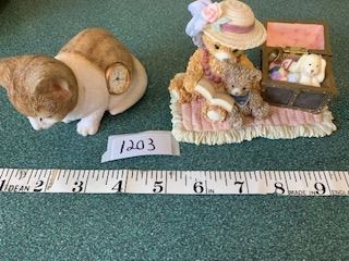 LOT OF 2 SITTING CAT CLOCK, MADE IN CHINA. TRINKET TEDDY BEAR BOX “VICTORIA & BEN TINY TREASURES” BAINSBRIDGE BEARS COLLECTION LIMITED EDITION MARKED 1297 OF 10.000 PCS. MANUFACTURED BY CARLTON CARDS