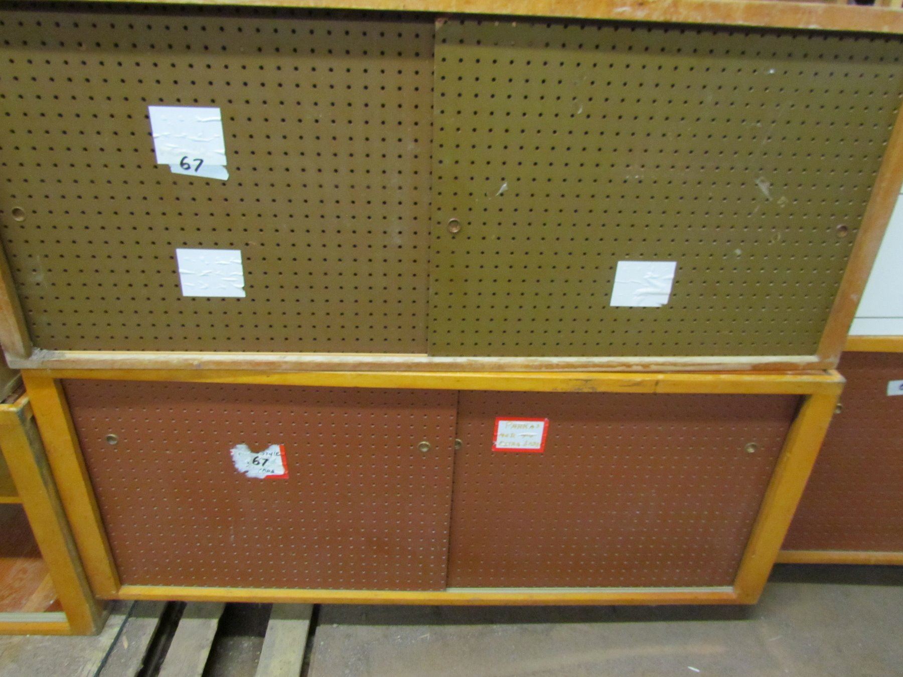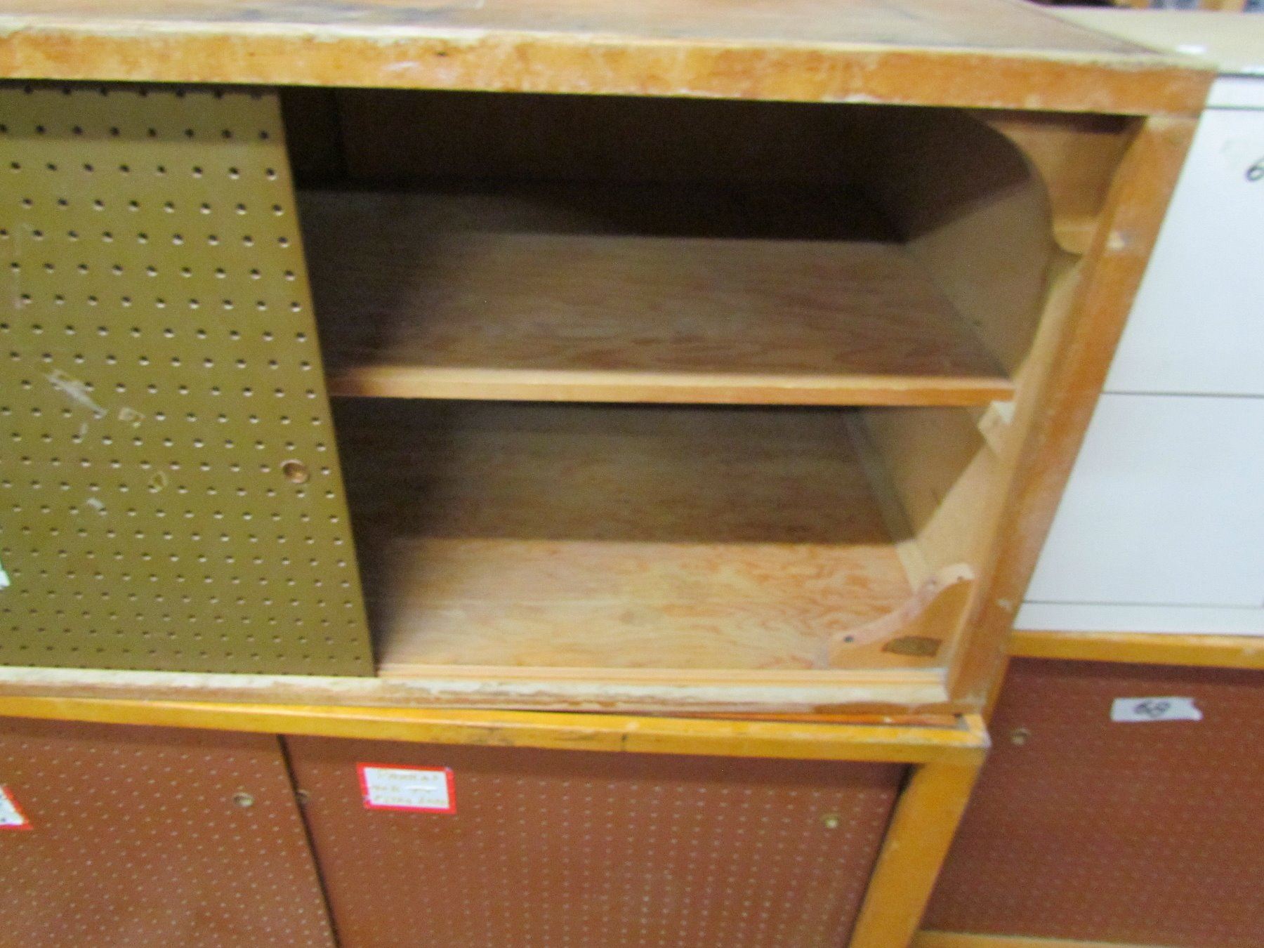 LOT OF 2 STACKING WORK SHELVES ( 5' LONG X 24" TALL X 30" DEEP) *BUILT WITH 3/4 INCH FIR WOOD* (DOOR MISSING)