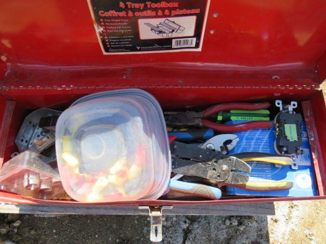 LOT OF 2 TOOL BOXES AND CONTENTS (ASSORTED TOOLS AND ELECTRICAL ITEMS)