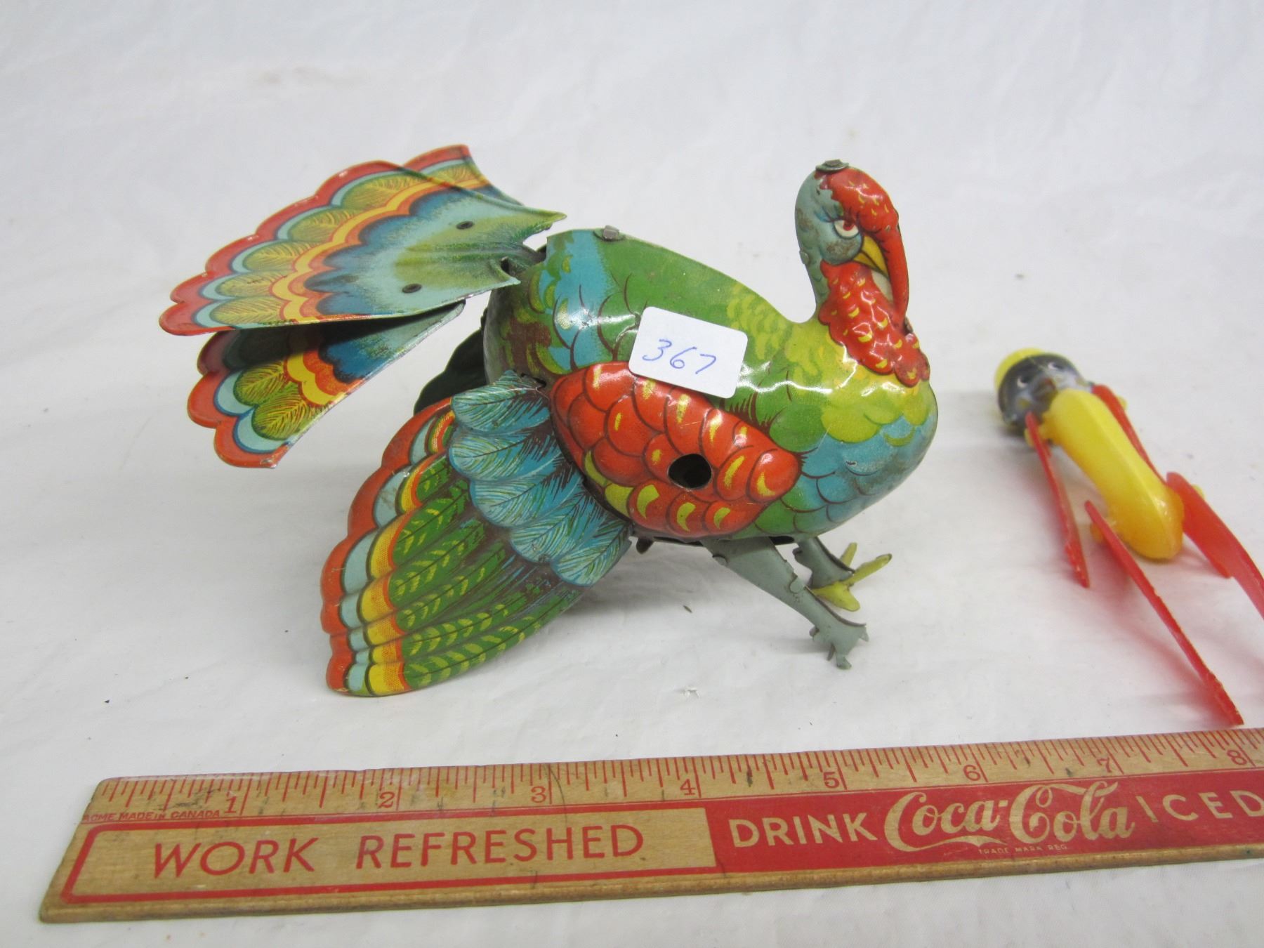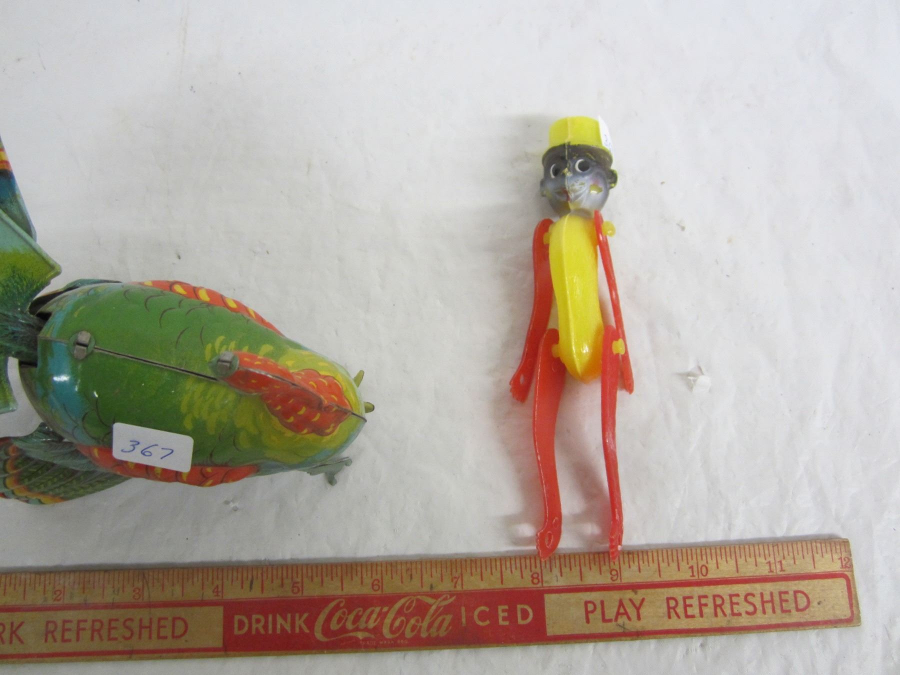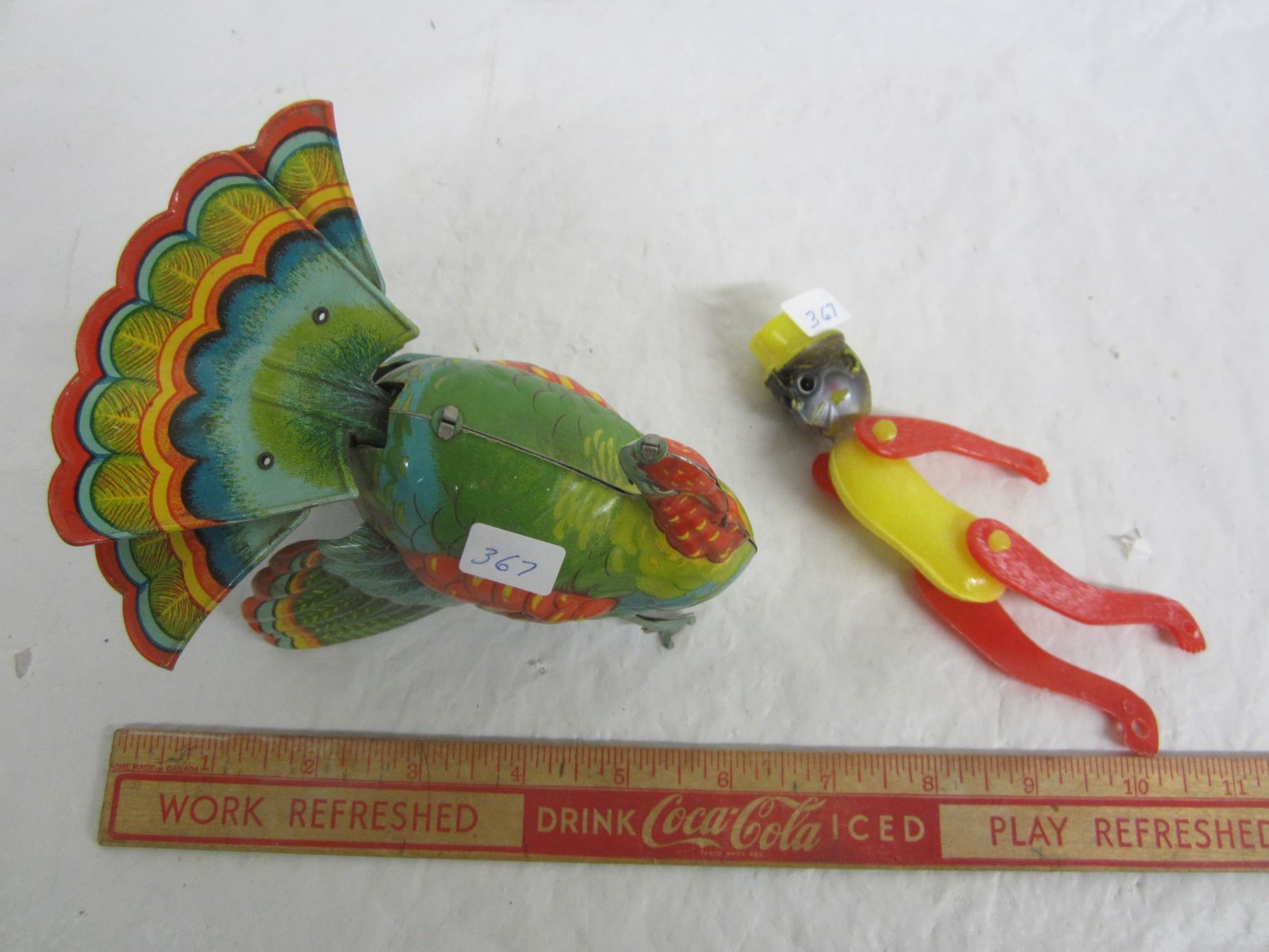 LOT OF 2 TOYS MONKEY AND WIND UP PEACOCK