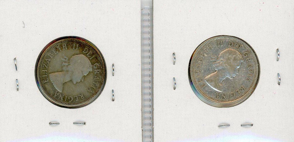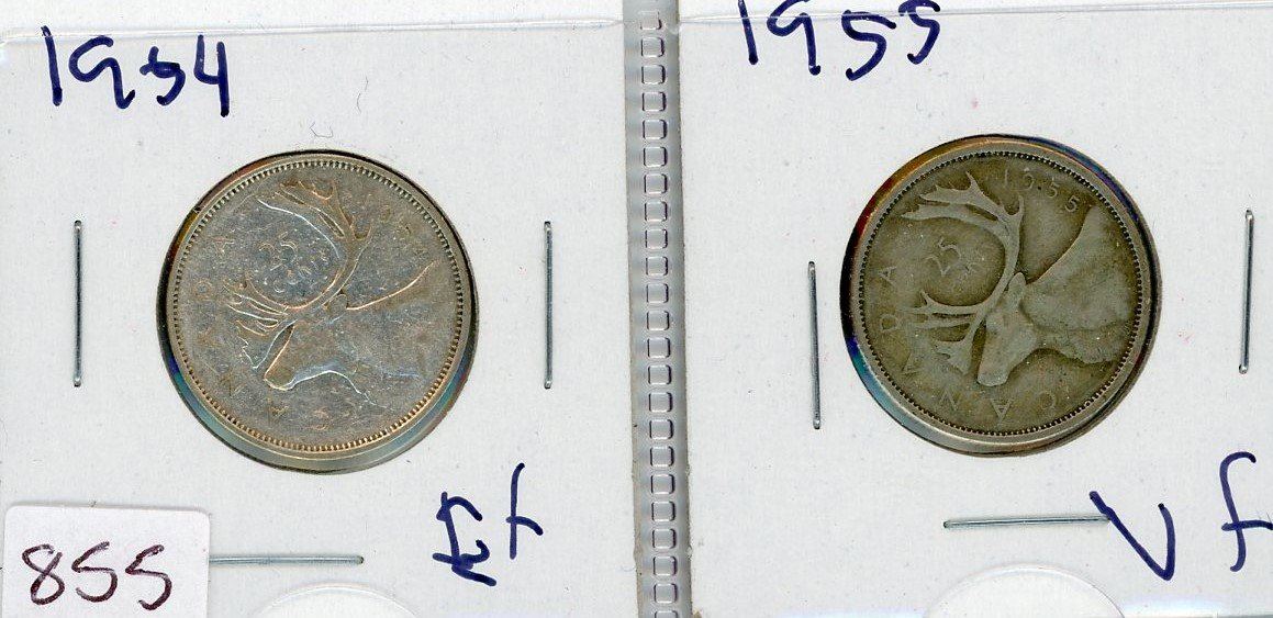 LOT OF 2-TWENTY FIVE CENT COINS (CANADIAN) *1954 & 1955* (SILVER)