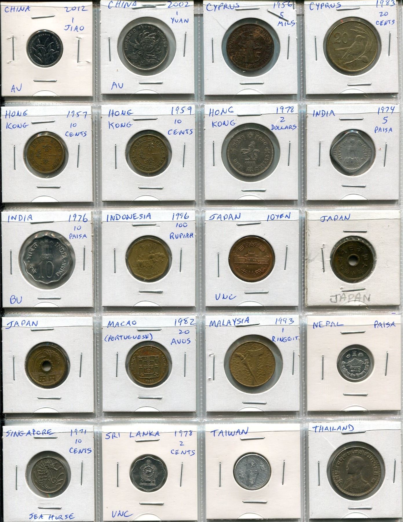 LOT OF 20 DIFFERENT ASIAN COINS FROM CHINA, CYPRUS, HONG KONG, INDIA, INDONESIA, JAPAN, MACAO, MALAY