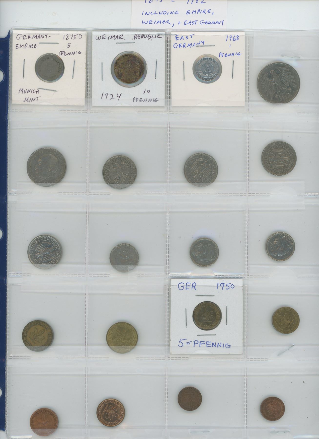 LOT OF 20 DIFFERENT COINS FROM GERMANY 1875 – 1992 INCLUDING GERMAN EMPIRE, WEIMAR REPUBLIC AND EAST