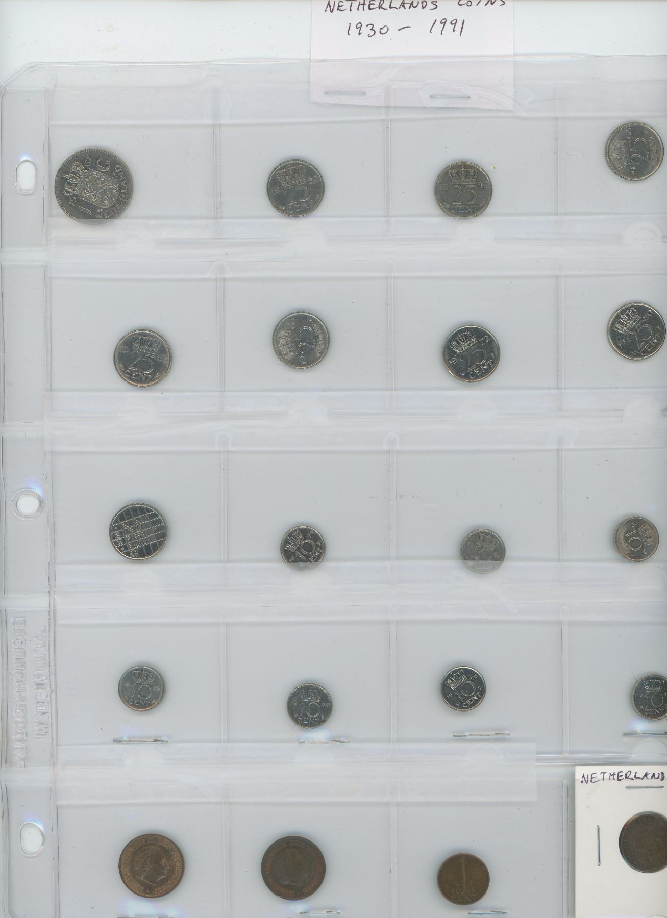 LOT OF 20 DIFFERENT COINS FROM NETHERLANDS 1930 – 1991.