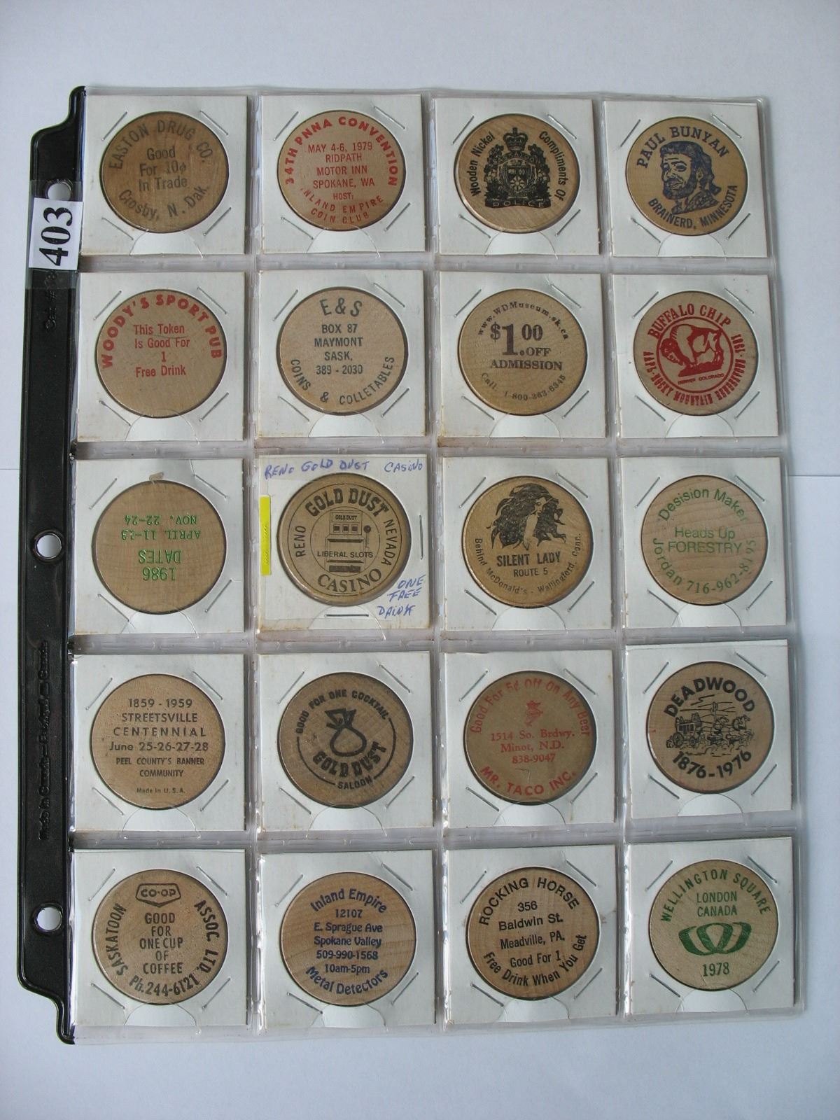 LOT OF 20 DIFFERENT WOODEN TOKENS - US and CANADA