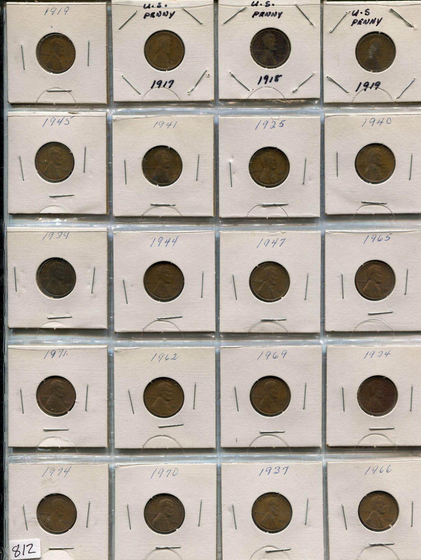 LOT OF 20-ONE CENT COINS (USA) *VARIOUS DATES BETWEEN 1917-1974*