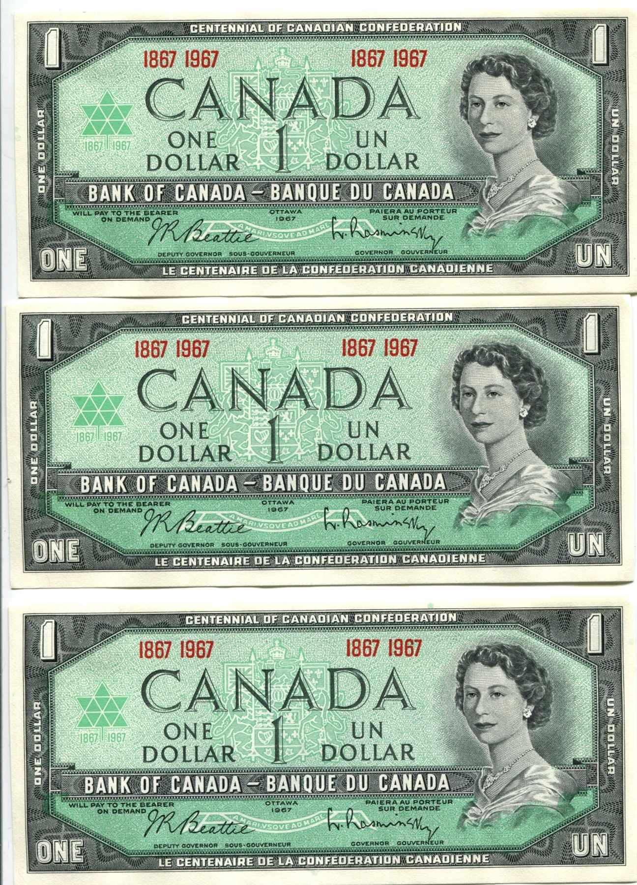 LOT OF 3 1867-1967 CENTENNIAL DOLLARS