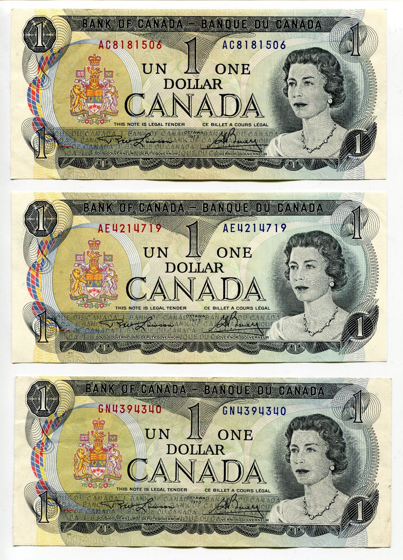 LOT OF 3 1973 CNDN 1 DOLLAR NOTES
