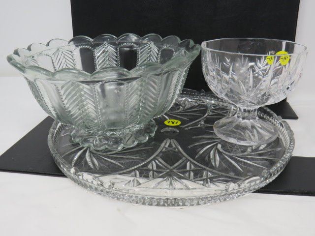 LOT OF 3 ASSORTED CRYSTAL DISHES (SERVING PLATTER, 2 BOWLS)